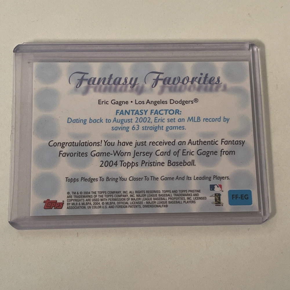 2004 Topps Pristine Fantasy Favorites Relics Eric Gagne #EG