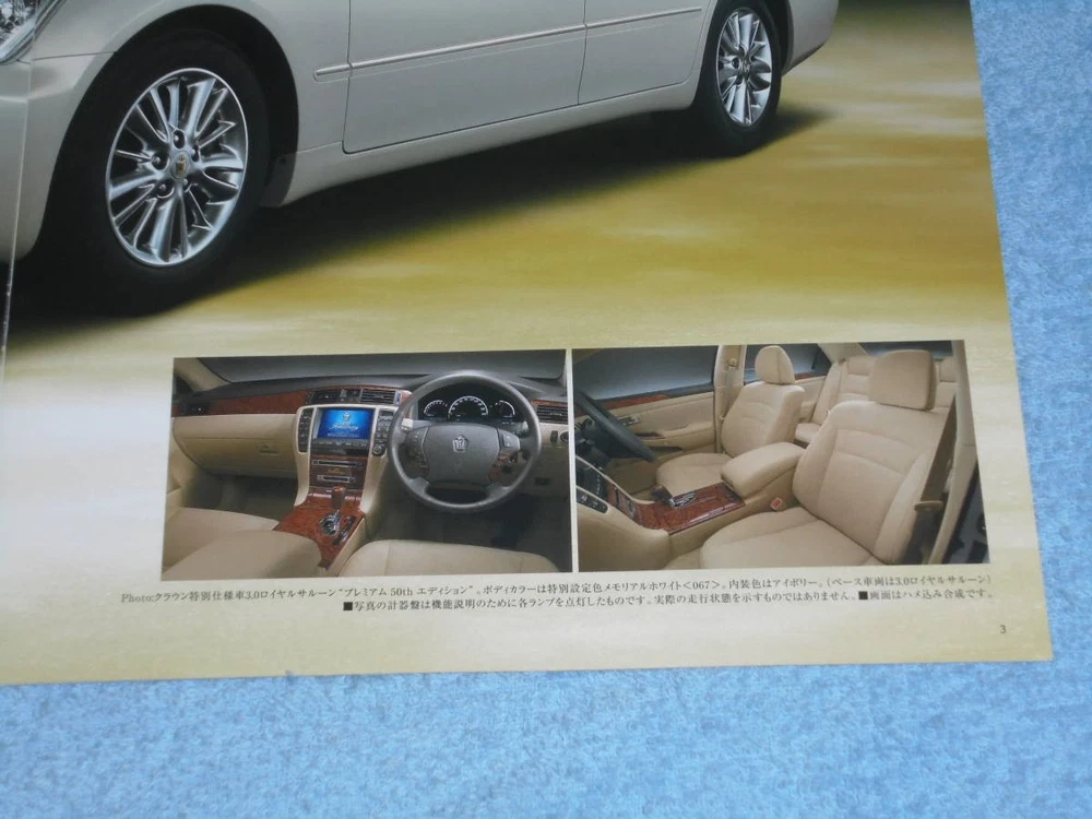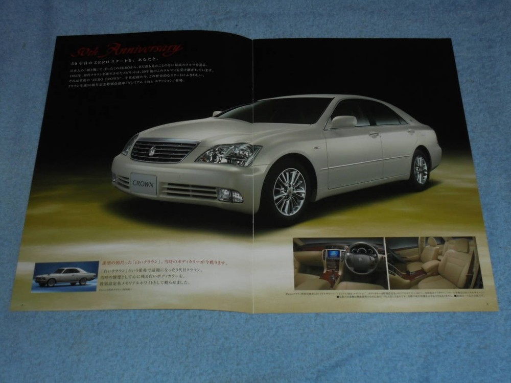 Item Title 2004 180 Toyota Crown 50Th Circle Commemoration Special Edition Premium Catalog Payment Supports managed payments Please pay within 5 days after auction is finished. About Us We are located in Japan. It's our pleasure to make you happy by proposing our recommend item. If you have any questions or request about items, please feel free to ask us. International Buyers - Please Note: -Import duties, taxes, and charges are not included in the item price or shipping charges. These charges are the buyer's responsibility. -Please check with your country's customs office to determine what these additional costs will be prior to bidding/buying. -These charges are normally collected by the delivering freight (shipping) company or when you pick the item up - do not confuse them for additional shipping charges. -We do not mark merchandise values below value or mark items as - gifts - The US and International government regulations prohibit such behavior. Thank you for your understanding.