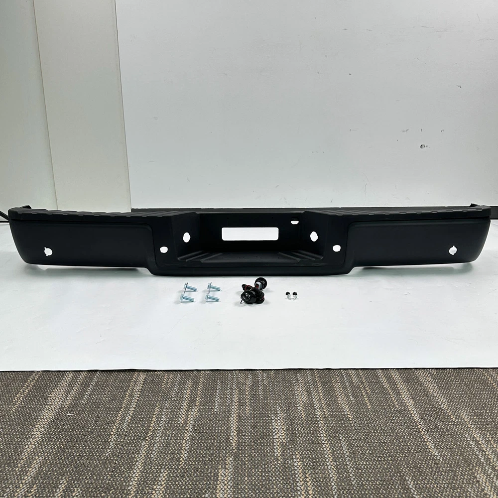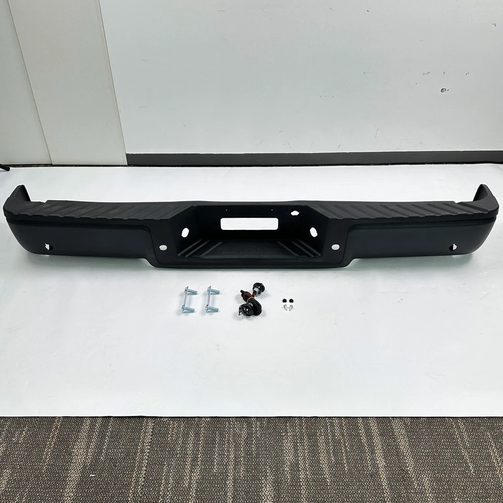 Fitment: Fit 2004 Ford F-150 Fit 2005 Ford F-150 Fit 2004 Ford F-250 Lightduty Only Fit 2005 Ford F-250 Lightduty Only Only Fit StyleSide(Straight Bed) Not Fit FlareSide(Super Crew) For Models Up To 08/08/2005 Production Date Only(F-150 2004-2006) Item Specifications: Color: Black Material: Carbon Steel Type: Bumper Assembly Placement on Vehicle: Rear Fitment Type: Direct Replacement Notice: For Models with Park Assist Holes Partslink Number: FO1103120, FO1103128 Package Content 1x Pickup Rear Bumper 1 x Set of License Plate Lamp with Harness Some Bolts and Screws On Dec 27, 2024 at 10:15:51 PST, seller added the following information: