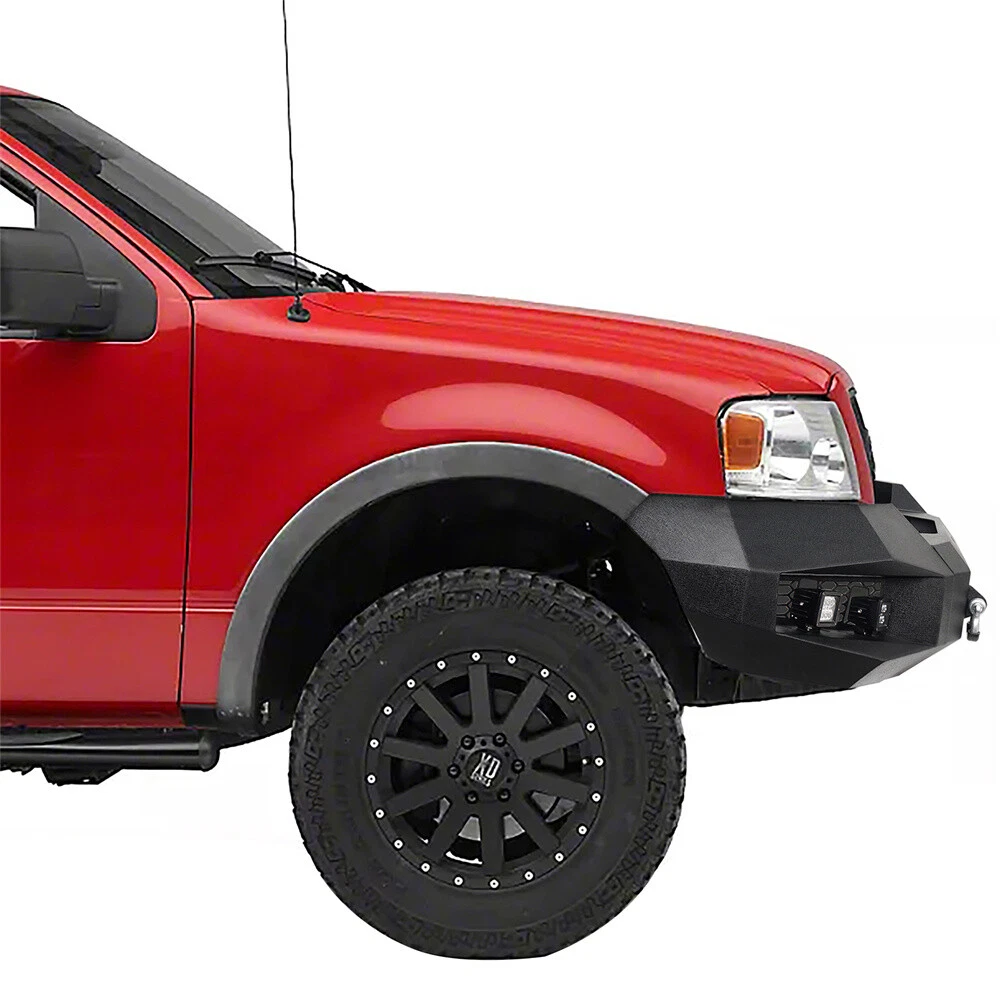 Jeep Gladiator JT Jeep Wrangler JL Jeep Wrangler JK Jeep Wrangler TJ Jeep Wrangler YJ Jeep Cherokee Jeep Wrangler CJ7 CATALOG Other Jeep series Jeep Gladiator 2020-2024 JT Jeep Wrangler 2018-2024 JL Jeep Wrangler 2007-2018 JK Jeep Wrangler 1997-2006 TJ Jeep Wrangler 1987-1995 YJ Jeep Cherokee 1984-2001 Jeep Wrangler 1976-1986 CJ 7 Toyota series Tacoma 2005-2023 Tundra 2007-2021 Ford Series Ford F-150 Ford F-250 F-350 Ford Bronco Ford Ranger Ram series Ram 1500 Ram 2500 3500 Chevy Silverado series Silverado 1500 2007-2013 Silverado 1500 2014-2015 Silverado 1500 2016-2018 GMC Sierra Motor Light& Brackets Tail & Turn Lights Fog Lights & Mounts Universal Fitment Product FULL WIDTH STEEL FRONT BUMPER W/WINCH PLATE & LED LIGHT FOR 2004-2008 FORD F150 Type 1 Front Bumper 3-piece design full-width front bumper Rugged off-road look with Hooke Road Logo Fully-welded D-Ring mounts with 4.75-ton capacity. 9500 lbs rated, 3/4'' D-rings included Built-in winch plate rated up to 12000 lbs 4×18w LED spotlights included Not Compatible with Factory Sensors Easy bolt-on installation. No drilling required. Heavy-duty 11-gauge(1/8 Inch) steel for the bumper main body, 8-gauge(11/64 Inch) for the structural connection plates and winch plate Textured black powder coat finish & Premium E-coating process inside Bumper weight: about 145 lbs Type2 Front Bumper 3-piece modular design Rugged styling and excellent protection Features high strength D-ring mounts welded both inside and out with a 4.75-ton capacity. D-rings not included. Comes with 4×18w white LED spotlights Accommodates straight LED light bars ranging from 16" to 28"(Not Included) Equipped with a flip-up license plate mounting bracket Built-in winch plate for up to 12,000 lbs winch Heavy-duty steel construction: 11-gauge(1/8 Inch) steel for the bumper main body, 10-gauge(9/64 Inch) steel for the winch plate and mounting structure plate. Textured black powder coat finish & Premium E-coating process inside Bumper weight: about 82 lbs Easy bolt-on installation without drilling or cutting Type 3 Front Bumper 3-piece modular design Practical functionality design, reinforced front-end protection Includes 4×25w LED spotlights Accommodate straight LED Light bars range from 16" to 24"(Not Included) Features high strength D-ring mounts. D-rings not included Equipped with a flip-up license plate mount Built-in winch plate for up to 12, 000 lbs Equipped with a solid skid plate Heavy-duty, high tensile 11-gauge(1/8 in) steel for bumper main body, 8-gauge(11/64 in) steel plate for mounting structure and winch plate Textured black powder coat finish & Premium E-coating process inside Bumper weight: about 90 lbs Direct bolt-on installation. No drilling required Package Included (one bumper) Front Bumper Assembly Mounting Hardware Kit Installation Instruction Fitment: Fits for 2004-2008 Ford F-150 Models DELIVERY DETAILS PAYMENT ABOUT RETURN ABOUT US CONTACT US DELIVERY DETAILS Normally, your package will be handed to USPS/FedEx by 2 workdays, and the following delivery could take 1-10 day(s). Our warehouses are in CA/NJ, US. Your package will be shipped from the nearest warehouse which has stock. During the epidemic situation, information of logistics updated as well as deliveries could be delayed caused by lack of man power from logistics company. If the logistics information shows "Shipment information sent to XXX", your package has been handed to the logistics personnel. Please be patient or contact us for further information. PAYMENT We accept Paypal, Visa, Mastercard, Apple Pay, Google Pay, American Express etc. ABOUT RETURN We provide 30 days return guarantee for all items that we sold. But please contact us first. We will be happy to exchange or refund. All returned products must be in original condition and packaging. Please take some pictures of the product to us before sending out. Unfortunately, if products have been assembled or modified, we cannot take them as returns. Please save your return tracking number or post receipt, and email it to us. We need this in case there are any issues during transit. Refund will only be issued upon our receipt of the returned parcel. If the product was damaged on the return shipping way, we can only offer partial refund. ABOUT US We are the authorized dealer of the "Hooke Road®" brand. The Hooke Road Brand has been certified as a member of SEMA. We have our own factory and design team. We make all kinds of specialty parts and accessories to make vehicles more attractive, more unique, more convenient, faster, safer, more fun and even like-new again. Wish you have a terrific off-road experience with our products. CONTACT US Please contact us via eBay message. All E-mail will be replied within 24 Hours in working days or 48 hours on weekend. If you are satisfied with your purchase, please leave us 5 Star Ratings and Positive Feedback. It will be highly appreciated! Warm Prompt: If you have any problems with this order/item, such as items not being received on time or packages being damaged, please contact us firstly. We will give you a satisfactory solution. SHOP BY BRANDS Brand Hooke Road Manufacturer Part Number Y8001020304 Type Bumper Placement on Vehicle Front Color Black Material Steel Finish Powder-Coated, Textured Manufacturer Warranty 2 Year Features Durable, No Drilling Required, Scratch-Resistant, Easy Installation Fit For 2004-2008 Ford F150 OE/OEM Part Number Y8001020304 Attachment Type Bolt-On Items Included Mounting Hardware, Bolts, Screws, LED Light Vintage Part No Performance Part Yes Bumper Cut-Outs Tow Hook Cut-out, Towing Hitch Cut-out