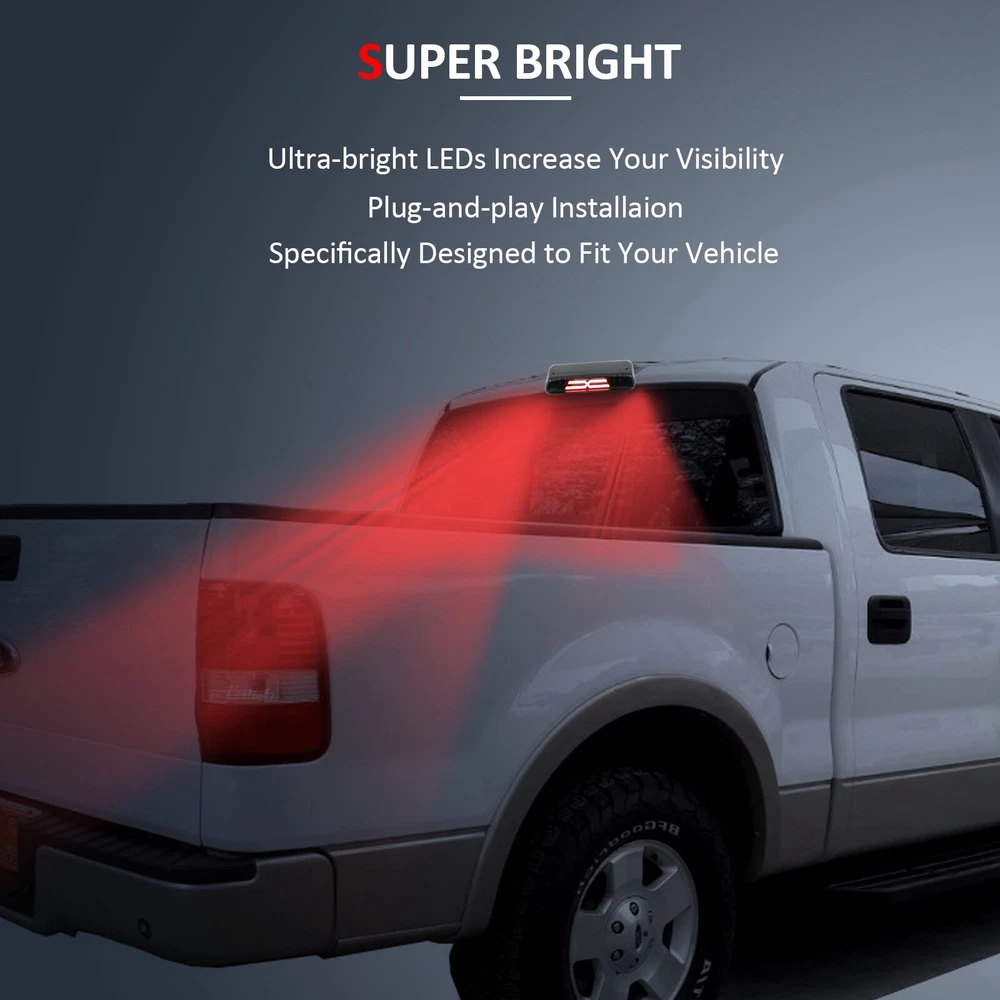 Description: Our LED third brake light is a quick and easy way to dress up your pickup truck. When lit, the bright LEDs (Light Emitting Diodes) are illuminated, and shine up to ten times brighter than standard light bulbs. Even when the brake is not pressed, the integrated cargo light (if equipped) gives off plenty of white light to view your gear in the truck bed. The LED third brake light has a durable polycarbonate lens with free form reflector, and available with either the Clear lens or custom Smoked lens. Specifics: 100% Brand New Professional Installation is Highly Recommended Installation Instruction is NOT Included 3RD Third Brake Light For 2004-2006 2007 2008 Ford F-150 Ford Lobo Smoke Lens Description: Our LED third brake light is a quick and easy way to dress up your pickup truck. When lit, the bright LEDs (Light Emitting Diodes) are illuminated, and shine up to ten times brighter than standard light bulbs. Even when the brake is not pressed, the integrated cargo light (if equipped) gives off plenty of white light to view your gear in the truck bed. The LED third brake light has a durable polycarbonate lens with free form reflector, and available with either the Clear lens or custom Smoked lens. Specifics: 100% Brand New Professional Installation is Highly Recommended Installation Instruction is NOT Included Plug-n-Play Operation, Low Power Consumption Super Bright LED lights Compare to the OEM Halogen Brings a Different Appearance to Vehicle Thats Great for Show Use Uses Existing Bolt Holes for Installation Note: 1.Please check and confirm this things fits yours before buying. 2.If you can't install, please get professional maintenance staff to help you install. 3.The function of the high-mounted brake light is to warn the vehicles driving behind, so as to avoid rear-end collisions. High-mounted brake lights are generally installed on the upper part of the rear of the car. Prior to installation please verify the following: 1. Inspect back circuit board and wire connections 2. Verify circuit board is protected from exposed metal and wires when installing in the vehicle 3. Make sure the following wires are going to their correct locations. a. Black is Ground b. Red is Brake Light (+12v) c. White is Reverse Light (+12v) d. Yellow is Auxiliary or Running Light (+12v) Packing Include: 1 X Third Brake Light Item Specifics Manufacturer Part Number LMS127643-4-01S Brand LMS Bulb Type LED Placement on Vehicle Rear Lens Color Smoke/Tinted Housing Color Black LED Color Red/White Lamp Type LED 3rd Brake Light Function Brake/Cargo Light Fitment Type Direct Replacement Bulbs Included Yes Modified Item Yes OE/OEM Part Number 7L3Z13A613B Number of Bulbs 1 Lighting Technology LED Light Color Red Items Included Bulbs Type Third Brake Light Assembly Payment We can accept Credit card, Debit card, Apple Pay, Google Pay,PayPal ,visa,or master card,and so on.Thank you. Additional shipping fee may be charged for buyers from Puerto Rico, Hawaii, Alaska, Guam, and the U.S. military address of the United States or other remote area (zone 8-10). Shipping All domestic orders will be shipped via USPS, UPS or Fedex from our US warehouse and usually arrives to your door in about 2-7 business days. Local pick up is not available. Return All of our brand new items come with a 60-Days money-back guarantee. Contact US Any question, please contact us by email on working days. Feedback If you are satisfied with the product you received, please leave us positive feedback and 5 scores DSR. Best Sales Red 3rd Third Brake Light Cargo Lamp for 2004-08 Ford F150 06-08 Lincoln Mark LT USD 21.39 For 1999- 2006 Chevy Silverado GMC Sierra Red Third 3rd Brake Tail Light Lamp USD 22.60 For 1988-98 Chevy Silverado C10 C/K 1500 2500 Smoke Third Brake Light Cargo Lamp USD 22.41 3rd Third Brake Light For 1994-1996 Ford F150 Rear Tail Lamp black Housing Red USD 21.08 Smoke 3rd Third Brake Light for 1999-2006 Chevy Silverado 1500 2500 3500 Sierra USD 17.66 Newly Listed Turbo Charger For 2008 Detroit Diesel Freightliner Truck DD15 Engine A4720960799 USD 293.98 K03 Turbocharger for Audi A3 VW Eos GTI Golf Jetta Passat 2.0T 06F145701B New USD 320.98 HE351VE Turbocharger Fits 07-12 Dodge Ram 2500 3500 6.7L for Cummins ISB 4041504 USD 572.98 Fits 2012-17 BMW N20 2.0L Turbocharger Turbo Kit 320i 328i 528i X3 xDrive Z4 F30 USD 359.98 Turbocharger Turbo Fits Garrett Detroit Diesel Truck Series 60 14.0L 758204-5007 USD 607.98 Terms & Contact Payment Policy Shipping Policy Return Policy FAQ About Us 3RD Third Brake Light For 2004-2006 2007 2008 Ford F-150 Ford Lobo Smoke Lens Description: Our LED third brake light is a quick and easy way to dress up your pickup truck. When lit, the bright LEDs (Light Emitting Diodes) are illuminated, and shine up to ten times brighter than standard light bulbs. Even when the brake is not pressed, the integrated cargo light (if equipped) gives off plenty of white light to view your gear in the truck bed. The LED third brake light has a durable polycarbonate lens with free form reflector, and available with either the Clear lens or custom Smoked lens. Specifics: 100% Brand New Professional Installation is Highly Recommended Installation Instruction is NOT Included Plug-n-Play Operation, Low Power Consumption Super Bright LED lights Compare to the OEM Halogen Brings a Different Appearance to Vehicle Thats Great for Show Use Uses Existing Bolt Holes for Installation Note: 1.Please check and confirm this things fits yours before buying. 2.If you can't install, please get professional maintenance staff to help you install. 3.The function of the high-mounted brake light is to warn the vehicles driving behind, so as to avoid rear-end collisions. High-mounted brake lights are generally installed on the upper part of the rear of the car. Prior to installation please verify the following: 1. Inspect back circuit board and wire connections 2. Verify circuit board is protected from exposed metal and wires when installi