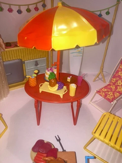 excellent. Most of the pieces are from the Barbie Cali Hawaiian Party Vacation Set. Extras have been added to the Diorama