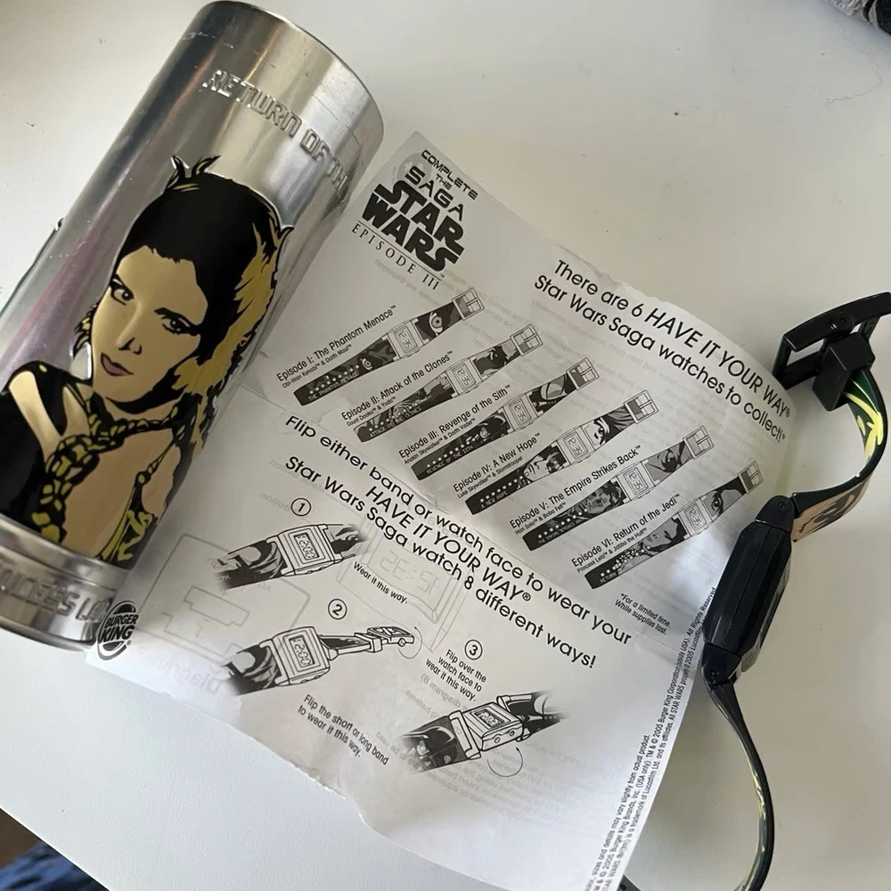 Experience the allure of a galaxy far, far away with the 2005 Burger King Star Wars Episode VI Return of the Jedi Princess Leia Watch. A must-have for any Star Wars aficionado, this timepiece features the iconic image of Princess Leia from the classic movie, VI: Return of the Jedi, making it a standout accessory for both fans of the franchise and collectors alike. Crafted with precision, this watch comes in its original, unopened packaging, ensuring it remains a pristine piece of memorabilia. Its design is a nod to both science fiction and horror genres, appealing to a broad range of enthusiasts. Suitable for those aged 4 and up, it's a versatile addition to any Star Wars collection and a charming gift for admirers of the character family.