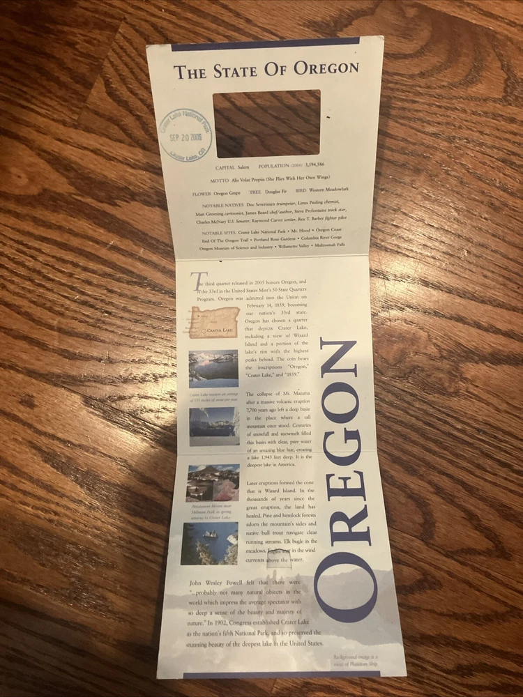 “2005 Crater Lake National Park Quarter Set – Uncirculated. Includes two uncirculated quarters (Denver and Philadelphia Mint) in original packaging with Crater Lake imagery. Great for collectors!” • 2005 Crater Lake National Park Quarter Set • Two uncirculated quarters (Denver and Philadelphia Mints) • Original packaging with Crater Lake imagery • Stunning depiction of Oregon’s Crater Lake • Ideal for collectors