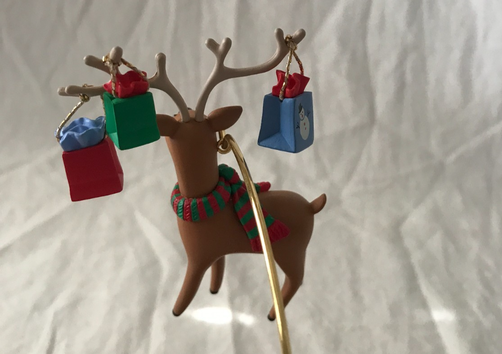 2005 Hallmark Christmas Keepsake Ornament Santa's Little Shopper Reindeer Bags