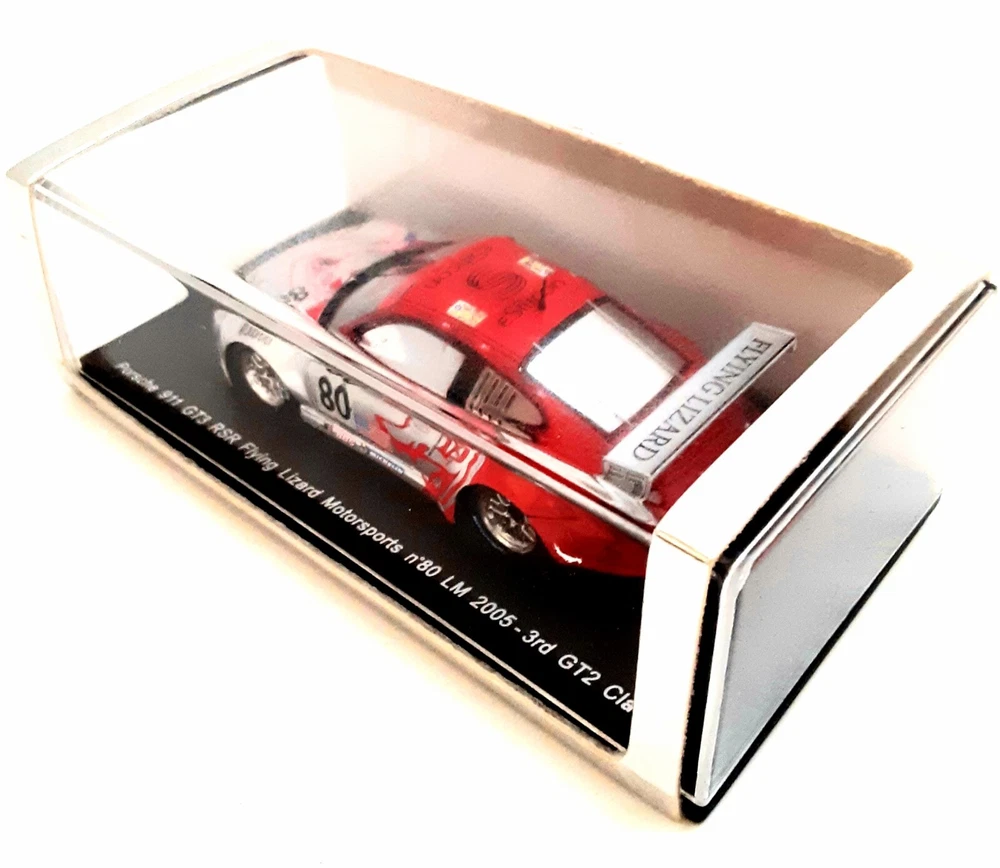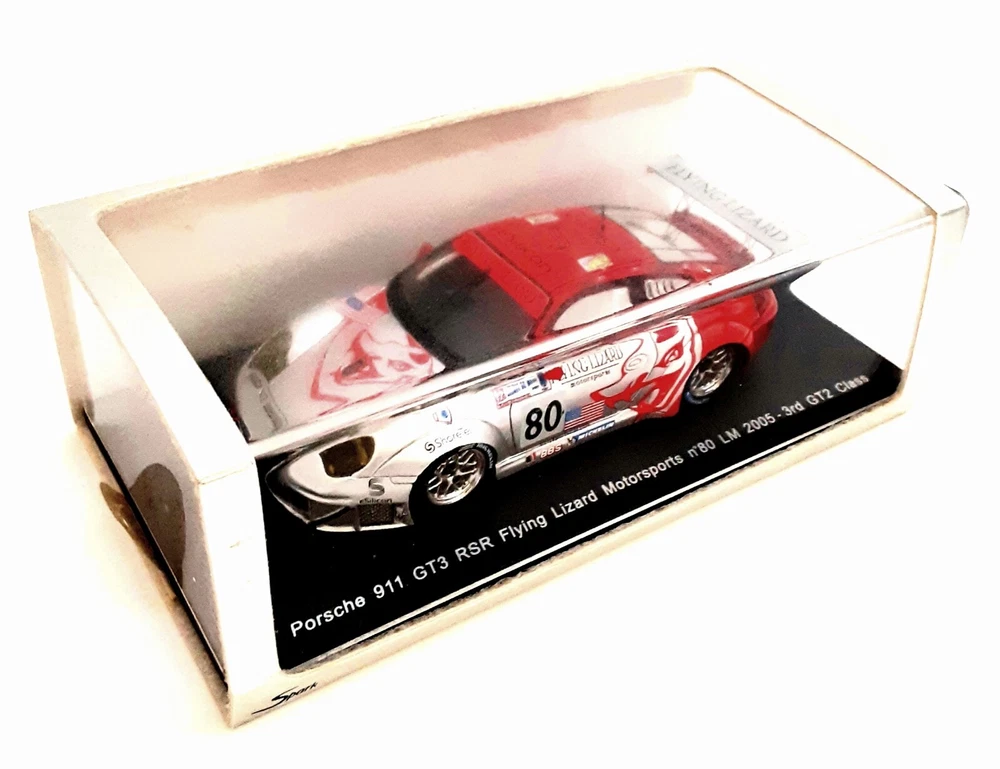 Selling A 2005 Porsche 911 GT3 RSR Flying Lizard Mororsports n80 LM 3rd GT2 Class Metal Diecast 1:43 Scale S# S0915 Colors Are Silver And Red This Collectors Metal Diecast Is A Spark Model Produced By Minimax Import & Export Co Ltd Condition: New In Box ( New Old Stock) Buyer Pays All Shipping Costs