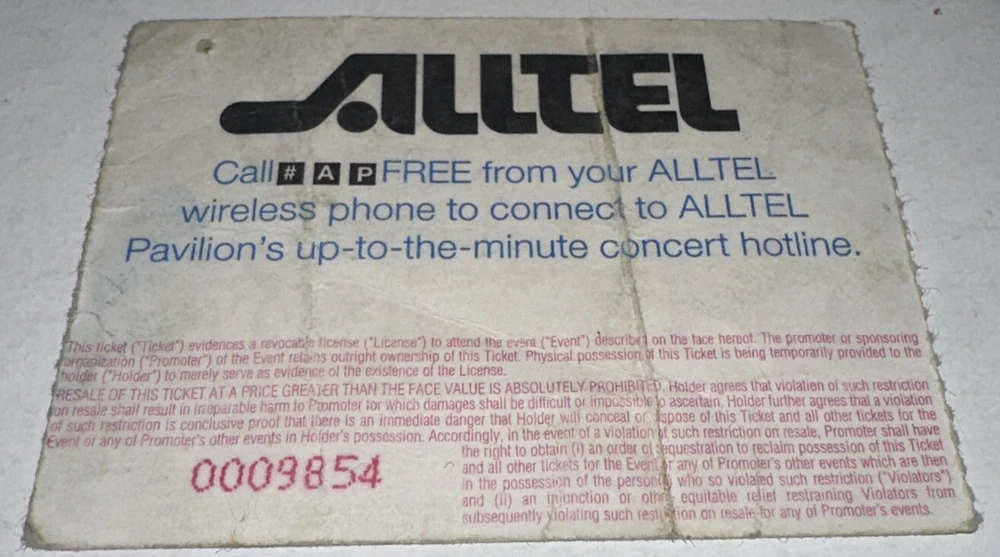 Ticket is a Stub and was used for admission. Shows Fading/ Creasing / Minor Wear. Same ticket as in the photo! Please Check out my other tickets! Shipped with tracking via USPS!