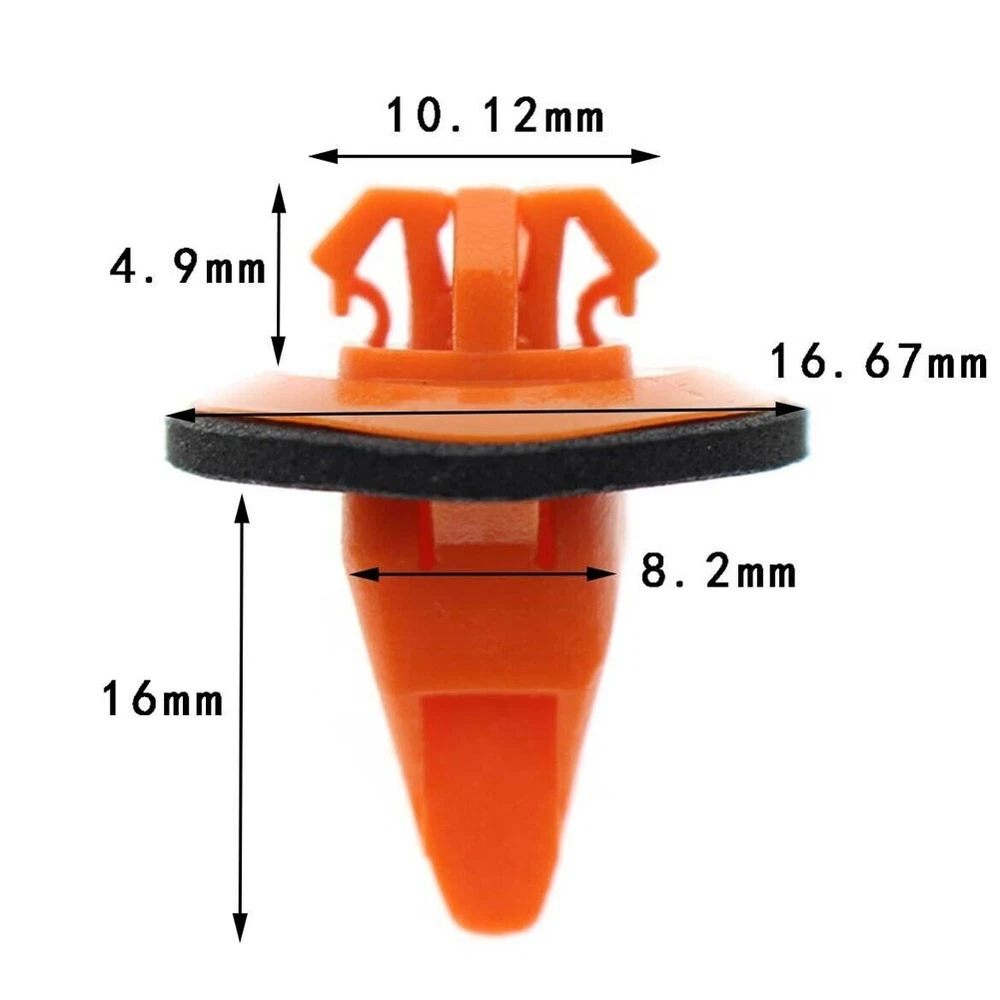 For 2005-2016 Toyota-Tacoma 75397-35010,Fender Flare Retainer Clips 75495-35010 DESCRIPTION Features : * brand new and high quality *Made of high quality material, and practical to use *Made of high-quality nylon material, anti-wear and anti-corrosion,would not break or crack easily during use. *Car good accessory, commonly used for fitting side skirts, bumpers and other trim. *These clips are suitable for firmly holding anything within a fit diameter hole. *Used widely for car Mudguard, bumper, door, side skirt or other car . *This non-OEM product,accessory only! *Fitment: For Tacoma 2005-2016 For Toyota For 4Runner 2003-2016 For Toyota For Sequoia 2008-2016 For Toyota For FJ for Cruiser 2007-2014 Specifications: *Size: Head Diameter: 17mm (Orange), Stem Length: 17mm (Orange), Head Diameter: 17mm (), Stem Length: 10mm () *Interchange Part number:75395-35070 (),75397-35010 (Orange),75396-35020 (),75495-35010 (),20688,20687 Package includes: 50x Clips 50x Blue Clips Note: 1. The real color of the item may be slightly different from the pictures shown on website caused by many factors such as brightness of your monitor and light brightness. 2. Please allow slight manual measurement deviation for the data. POLICES Shipping Payment WARRANTY We only ship to confirmed Paypal addresses. Please comfirm that your paypal address is in line with your shipping address. Please kindly note that the c ombined shipping is not provided because the shipping fee is calculated by weight. Also, the each additional item means exactly the the same color and size. It takes about 7 -15 working days to US; about 10-30 working days to other countries. Transit time may be a little delayed because of the bad weather and customs inspection . If you do not receive your item within 30 working days since payment finished, please contact us immediately for further assistance. We accept payment via Paypal only. Payment must be made within 5 days, Non-payment may result in an UPI (Unpaid Item), eBay will automatically close your account if you accumulate 4 UPI's total. Import cutoms duties or taxes which are not included in item price, if any, are on buyer's responsibility. You can check with your local customs office for further information prior to bidding/buying. We strive for 100% customer satisfaction! Positive Feedback is very important to us. If you have any questions, p lease feel free to contact us via "Ask seller a question" . We will reply your email within 24 working hours. On Apr 12, 2025 at 05:15:49 PDT, seller added the following information: