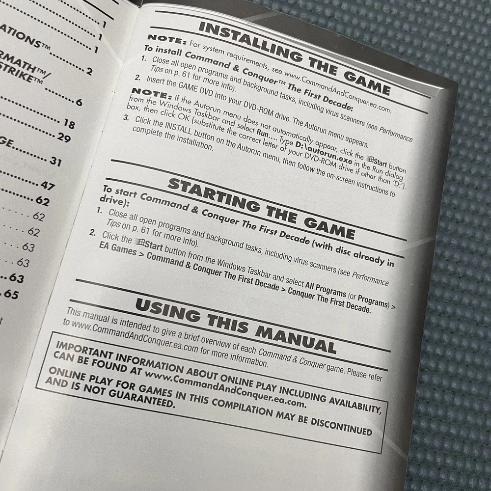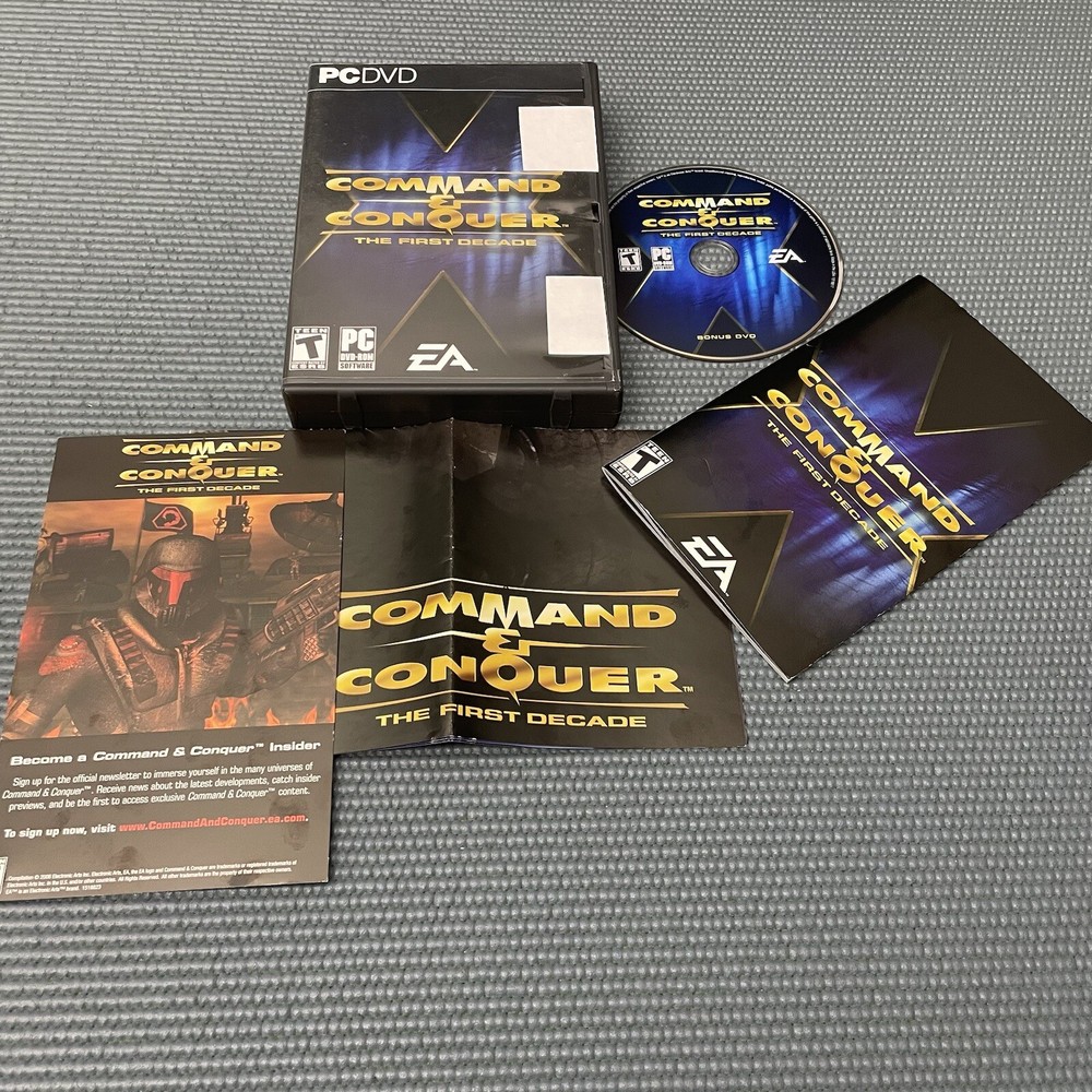 2006 COMMAND & CONQUER: The First Decade PC Game PreOwned Condition, Bonus DVD, Manual, Single Poster, AS-IS PLEASE READ BELOW No Returns, No Warranty. SELLING AS-IS. This item is PreOwned clean and in good condition. Outer protective case has minor scuff marks, minor dents, minor scratches, minor blemishes. All but in good shape. This listing item comes only with the following: Original Command & Conquer (The First Decade) Protective Hard Case Original Command & Conquer (The First Decade) Bonus DVD ONLY Original Command & Conquer (The First Decade) 65-Page Complete Manual With Registration Codes At The Back of Manual. Not Sure If Codes Still Work. Manual Intended To Give Brief Overview of Each Command & Conquer Game Original Command & Conquer (The First Decade) Single Poster (Front & Back) Approx. 17"x11" In Size (See All Photos) Teen Content Rating T By ESRB EA Electronic Arts ONLY BONUS DVD AVAILABLE. ISBN 0-7845-4002-0 UPC 014633151886 1518811 @@@@@@@@@@@@@@@@@@@@@@@@@@@@@ *** PLEASE READ BELOW *** Prompt and complete payment required for all purchases prior to shipping. Please take a brief moment to read the following below in its entirety: 1) See photos for approximate flat-lay measurements in inches. We provide detailed photos as best as possible. 2) Please review the entire description of this item including all photos prior to purchasing. 3) If you have any questions about this item or about any other items in our store, please don’t hesitate to let us know. We will respond promptly. 4) We ship promptly (same day or next day) as soon as eBay confirms that payment is complete. 5) Feel free to check out other items in our eBay store. We offer a variety of items across multiple categories. 6) Please note that all of our items are packaged securely prior to shipping in order to avoid any potential damages. 7) We videotape all of our items throughout the packaging and shipping process to protect both buyer and seller. 8) The item(s) on this specific listing is/are the exact one(s) that you will be receiving. Actual photos are represented in all of our listings. 9) Please, always leave a positive feedback for us and we will do the same for you. 10) Prompt immediate payment is required on all of our items. 11) Any international or non-US domestic purchases will be handled and processed through the eBay International Shipping Program. Please familiarize yourself with eBay’s International Shipping Program for all customs charges, fees, taxes, and more. 12) Kindly remember that after our packages get dropped off safely and securely at the postal carrier’s location, it is literally out of our hands and control at that point. 13) Please note that for items that require authentication by eBay, there will be an additional delivery time. Item(s) will have to be authenticated first by eBay before getting shipped out to buyer. Delayed delivery times for such items. Please be aware! 14) Any free shipping offered at our store is ONLY APPLICABLE for US Domestic purchases. Free shipping NOT AVAILABLE for international purchases at this time. We sincerely appreciate your purchase, your support, and we look forward to serving you with excellence. Thank you!