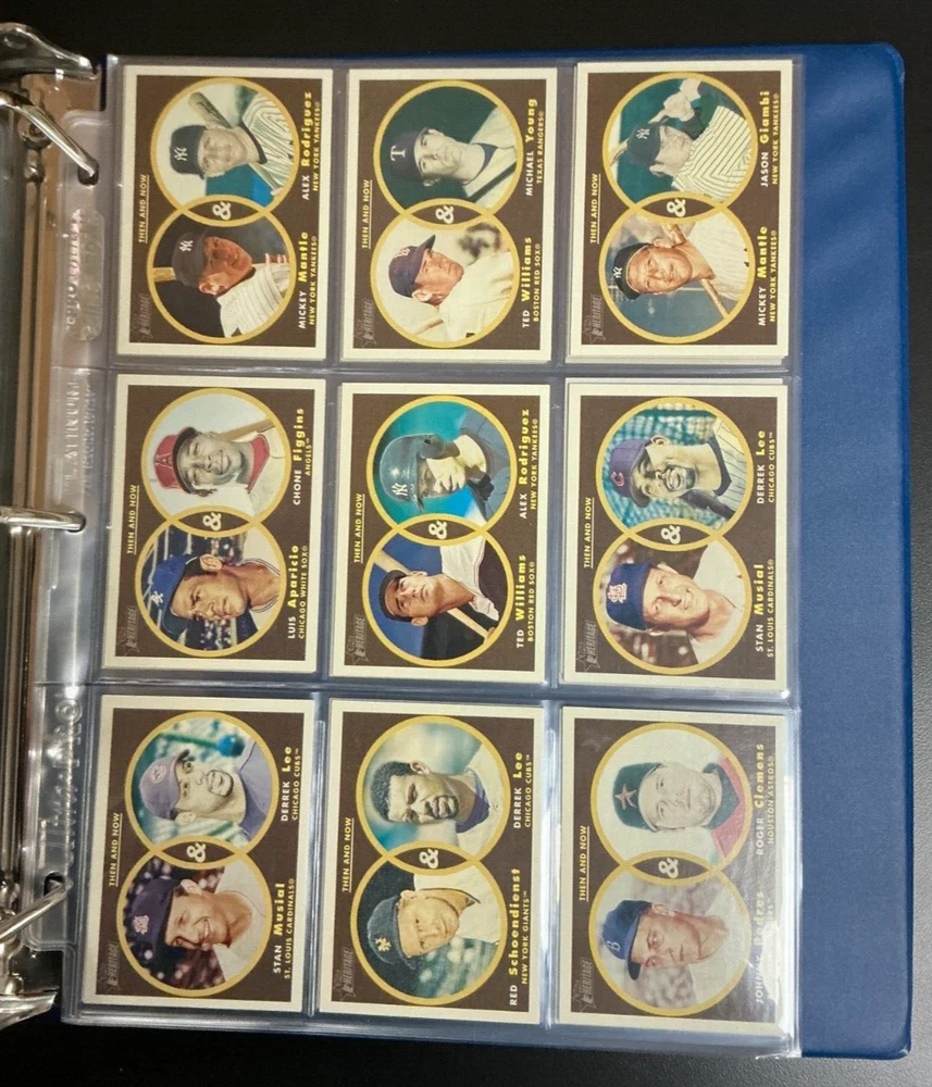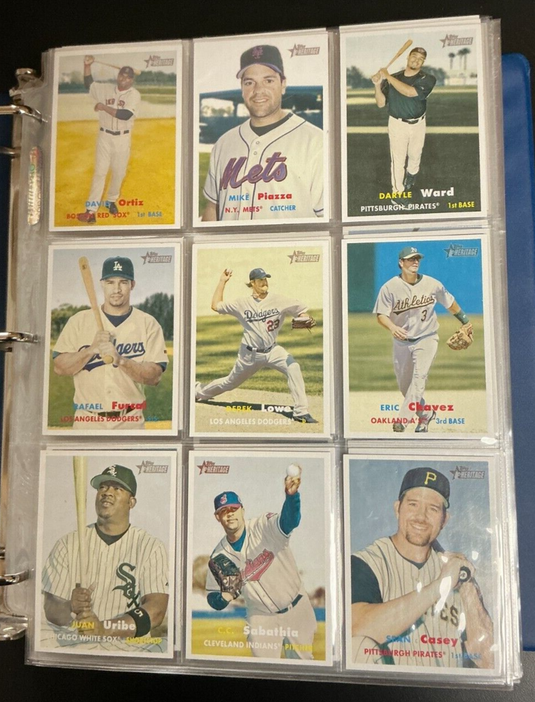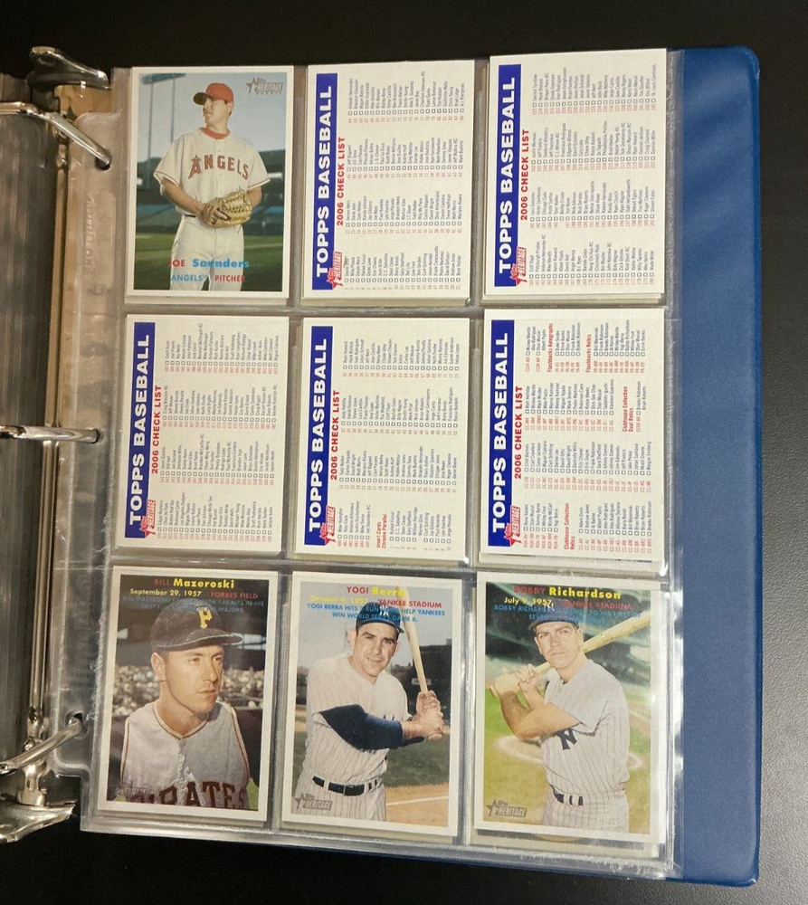 2006 Topps Heritage Baseball 529 Card Complete Set - Base, SP, Inserts - Binder 2006 Topps Heritage Includes Base Set #1-383 SP - #393-494 New Age Performers -15 BB Flashbacks - 10 Then & Now - 10 529 Total Cards Nm/Mt Or Better Condition PLEASE NOTE: Raw cards may contain scratches, chipping, creases, marks, dings, soft corners, up to 90/10 centering, edge wear, surface wear, and the like. Please note: If you are looking for a Gem Mint copy, please buy one that has already been graded. We do not accept returns. Also please note: This is a general message and does not necessarily pertain to this particular item. CHECK OUT MY OTHER STORE ITEMS AND AUCTIONS! I AM CONSTANTLY BUYING HUGE COLLECTIONS SO ALWAYS OFFER A WIDE ASSORTMENT OF SHORTPRINTS, PARALLELS, 1/1'S, JERSEYS, AUTOS, ROOKIES, AND MORE! AS ALWAYS, WE COMBINE SHIPPING (DETAILS BELOW) SO CHECK OUT MY OTHER STORE ITEMS, A LOT OF GREAT DEALS IN MY STORE! EVERYTHING PRICED TO SELL! SHIPPING WILL BE CHARGED AS FOLLOWS: ADD $4.50 FOR SHIPPING IN A BUBBLE (PAY THIS ONLY ONCE FOR MULTIPLE ITEMS) *PLEASE REQUEST TOTAL IN ORDER TO RECEIVE SHIPPING DISCOUNT. IF THE EBAY SYSTEM FORCES YOU TO PAY, PLEASE INCLUDE A NOTE WITH PAYMENT AND WE WILL REFUND THE DIFFERENCE. INTERNATIONAL AVAILABLE VIA EBAY'S GLOBAL SHIPPING PROGRAM ***** CUSTOMER SERVICE IS OUR PRIMARY CONCERN! IF THERE IS ANYTHING WE CAN DO TO MAKE YOUR TRANSACTION A MORE POSITIVE EXPERIENCE, PLEASE DO NOT HESITATE TO CONTACT US. WE APPRECIATE YOUR "5-STAR" RATING ON EBAY'S NEW "DETAILED SELLER RATINGS" CHECKLIST, AS THEY HELP US WORK TOWARD EARNING A POSITIVE REPUTATION ON EBAY. THANK YOU FOR LOOKING! ***** THANK YOU VERY MUCH FOR VISITING AND GOOD LUCK WITH THIS AUCTION!
