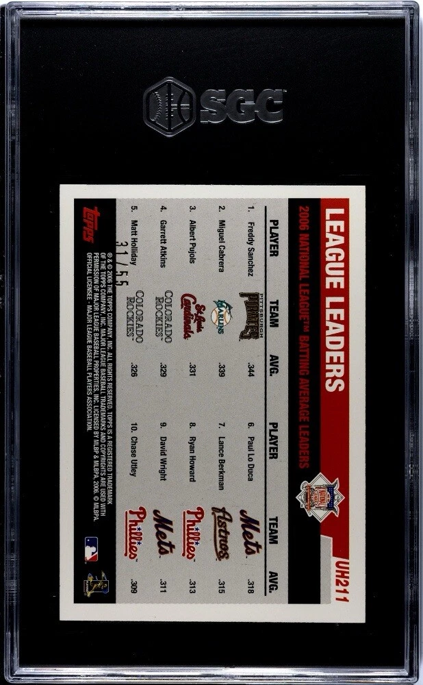 Elevate your collection with the 2006 Topps Update & Highlights UH293 card featuring team leaders Miguel Cabrera and Dontrelle Willis of the Miami Marlins. This rare black parallel variety is a must-have for fans and collectors alike, with a limited print run of just 55. Each card is serial numbered, ensuring its uniqueness and value. Crafted by Topps, a trusted name in sports memorabilia, this card captures a significant moment in baseball history from the 2006 Major League Baseball season. The card is not autographed, preserving the sleek design of the 2006 Topps set. Add a piece of sports excellence to your collection with this striking team leaders card.