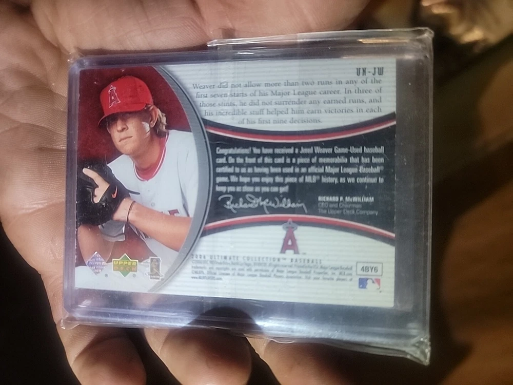 This 2006 Upper Deck Ultimate Collection sports trading card features Jered Weaver, a Major League Baseball player for the Los Angeles Angels. The card is part of a limited print run of only 35 and is a patch parallel/variety. It is also serial numbered and includes a memorabilia feature, making it a great addition to any collection. The card is ungraded and manufactured in 2006. It is an insert card from the 2006 Ultimate Collection set. With its unique features and rarity, this trading card is a must-have for any baseball card collector.