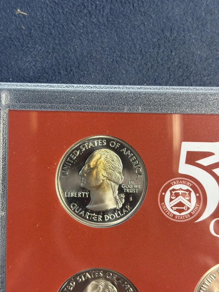 2006 United States Mint 50 States Quarters Silver Proof set. With original government packaging and Certificate of Authenticity. ** One of the Quarters has some slight toning on the cheek. **