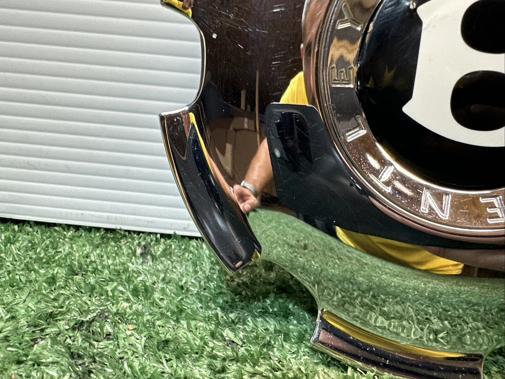 Enhance the look of your Bentley Continental GT GTC Flying Spur with this chrome center cap hubcap. Made of high-quality aluminum, chrome, and plastic materials, this wheel center cap is designed to fit the rear, left, front, and right placement on your vehicle. It comes with a number in pack of one and features a Bentley emblem type, making it a perfect addition to your car. This wheel center cap is easy to install and car wash safe. It is compatible with 2006-2012 Bentley Continental GT GTC Flying Spur models and comes with interchange part numbers 2009, 2008, 2007, 2006, 2012, 2011, and 2010. It is not a universal fitment and is not considered a performance part. Get your hands on this chrome center cap hubcap today and give your Bentley Continental GT GTC Flying Spur the upgrade it deserves. Has scratches. Has traces of glue. See pictures.