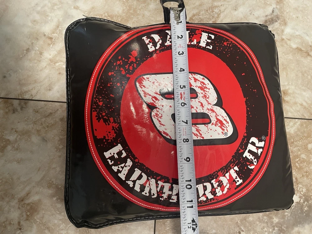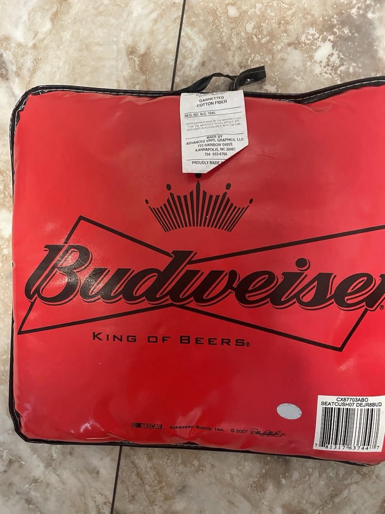 The 2007 Nascar Dale Earnhardt Jr. Stadium Seat Cushion is a collectible item featuring the race car driver's signature and is officially licensed by NASCAR. Made in China, this red seat cushion is designed for unisex adult fans of NASCAR and Dale Earnhardt Jr. It is a must-have for racing enthusiasts looking to show their support for the driver and the sport of NASCAR. Perfect for adding a touch of comfort and style to stadium seats or at-home fan cave. READ, has a few scratches, see photos.