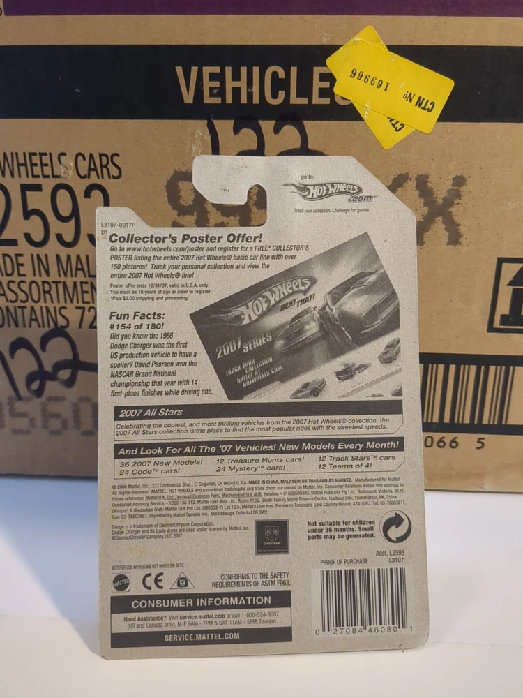 This Hot Wheels car is a must-have for any collector! The 2007 All Stars Dodge Charger features a stunning gold color variation and comes with chrome 5 spoke wheels. The 1:64 scale die cast metal and plastic model is unopened and comes in its original box. The car is part of the Die Cast Cars character family and was manufactured in Thailand. It is recommended for ages 3 and up and is suitable for both boys and girls. This Hot Wheels car is a great addition to any collection and is sure to impress! See pics for condition