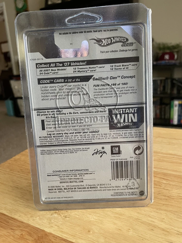 This Hot Wheels die-cast vehicle is a must-have for any car enthusiast. With its vibrant blue color and intricate detailing, this Cadillac Cien Concept model will make a great addition to any collection. The 1:64 scale and recommended age range of 5+ make it perfect for both kids and adults alike. Featuring the Code Car series and being the #02 of 24, this Hot Wheels car is a rare find. Made of high-quality die-cast material, it is both durable and well-crafted. The 2006 year of manufacture and Cars character family add to its collectible value. Don't miss your chance to own this stunning Hot Wheels Cadillac Cien Concept model!