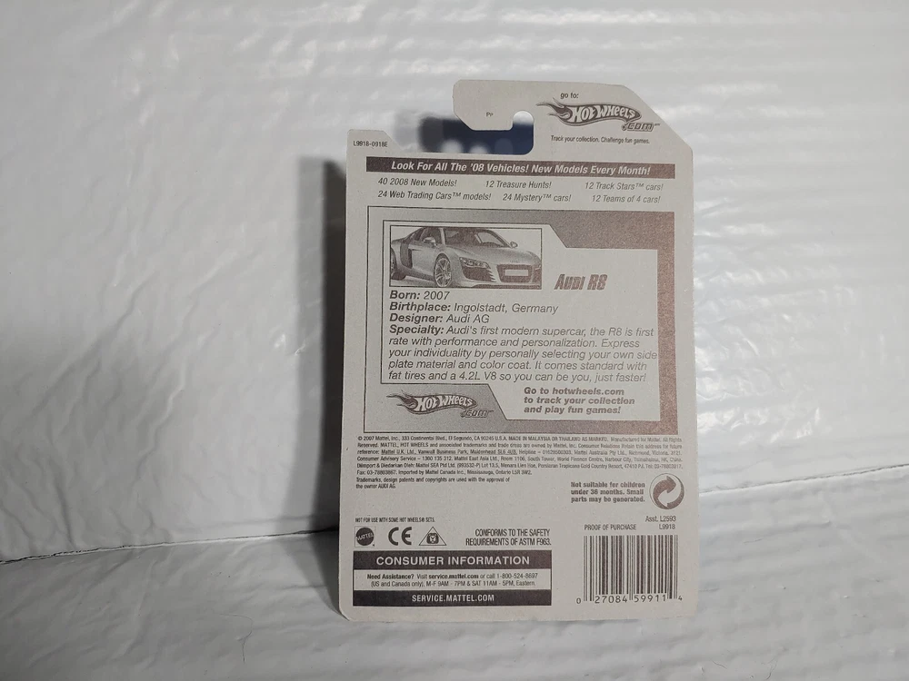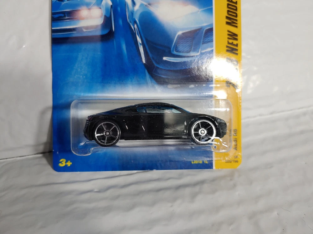 This is a 2007 Hot Wheels Audi A8 diecast \ die-cast car in black, with PR5 wheels. It is part of the 2008 New Models series, specifically model number 3 out of 40. This collectible Audi vehicle is suitable for enthusiasts and collectors alike, so grab it today!