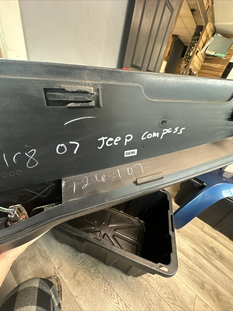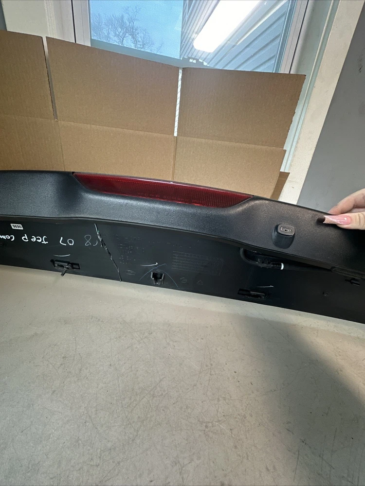 USED 2007 Jeep Compass Rear Liftgate Spoiler in black, made of plastic, specifically designed for the upper rear placement on the vehicle. The OEM part number is 05303754 AD. This spoiler is an accessory designed to enhance the exterior of the Jeep Compass by adding a sleek and stylish touch to the rear liftgate area. It is a genuine Jeep product, ensuring a perfect fit and quality construction for your vehicle.