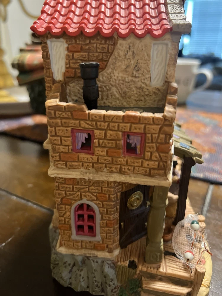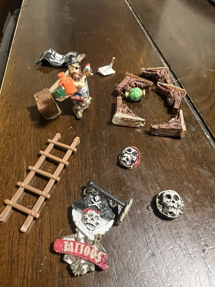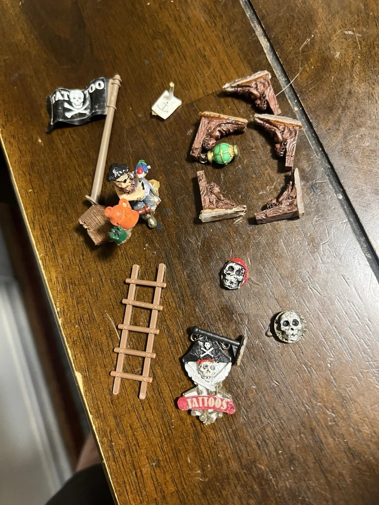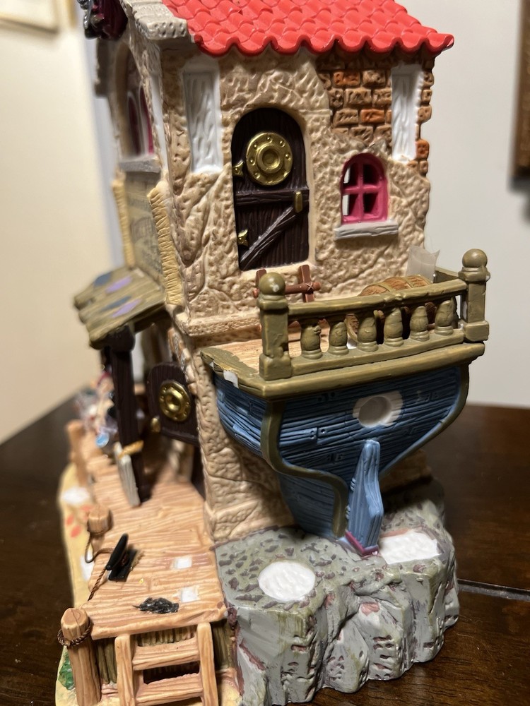 This spooky pirate-themed house is a fantastic addition to any Halloween village! The detailed ceramic design with tattoos and piercings gives it a unique, eerie vibe. Even though some pieces may need reattaching, it’s still a great collector’s item with tons of character. Perfect for adding a creepy touch to your seasonal decor!