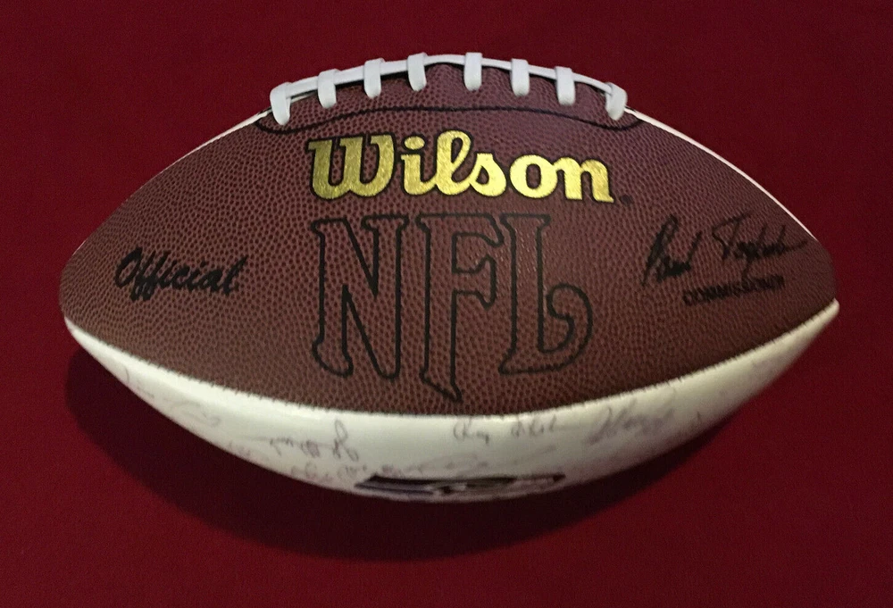 This is a 2007 Seattle Seahawks Autographed Team Wilson Football with approximately 45 different Seahawks players including Matt Hasselback, Jim Zorn, Marcus Trufant, Walter Jones, Brandon Mebane, Jordan Kent, and many more. I am providing the players listed for the team as a reference, but not a guarantee of all of the signatures: Jersey # Player 37 Shaun Alexander 68 Tom Ashworth 98 Baraka Atkins 52 Jason Babin 27 Jordan Babineaux 57 Kevin Bentley 99 Rocky Bernard 83 Deion Branch 3 Josh Brown 81 Nate Burleson Wale Dada 91 Chartric Darby 84 Bobby Engram 94 Bryce Fisher 5 Charlie Frye Rich Gardner 24 Deon Grant 62 Chris Gray 94 Howard Green 42 Michael Green 18 D.J. Hackett 8 Matt Hasselbeck 85 Will Heller 54 Will Herring 56 Leroy Hill 32 Kevin Hobbs 21 Kelly Jennings Cameron Jensen 71 Walter Jones 47 Bennie Joppru Jordan Kent 97 Patrick Kerney 34 David Kirtman 53 Niko Koutouvides 50 Lance Laury 75 Sean Locklear 7 Travis Lulay 44 Fred McCrary 73 Lynn McGruder 92 Brandon Mebane 20 Maurice Morris Joe Newton 87 Ben Obomanu 19 Logan Payne 36 Alvin Pearman 59 Julian Peterson 1 Ryan Plackemeier 88 Marcus Pollard 48 Derek Rackley 49 Jared Retkofsky 49 Jeff Robinson 25 Brian Russell 33 Josh Scobey 67 Rob Sims 65 Chris Spencer 38 Mack Strong 89 Boone Stutz Nu'u Tafisi Kelly Talavou 55 Darryl Tapp 51 Lofa Tatupu 86 Courtney Taylor 93 Craig Terrill 23 Marcus Trufant 90 Marcus Tubbs Steve Vallos 39 C.J. Wallace 15 Seneca Wallace 43 Leonard Weaver Kyle Williams 74 Ray Willis 26 Josh Wilson 77 Floyd Womack 66 Mansfield Wrotto 95 Ellis Wyms Check out our other listings for more graded vintage sports cards, we combine shipping! Shipping and handling is $14.95 via USPS.