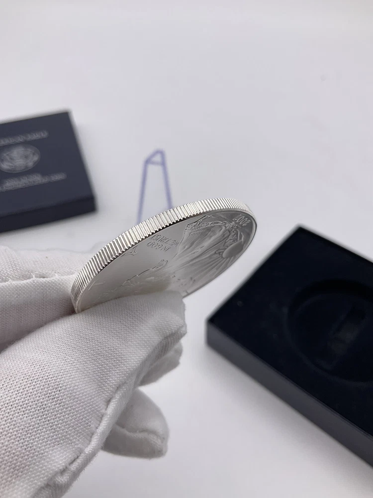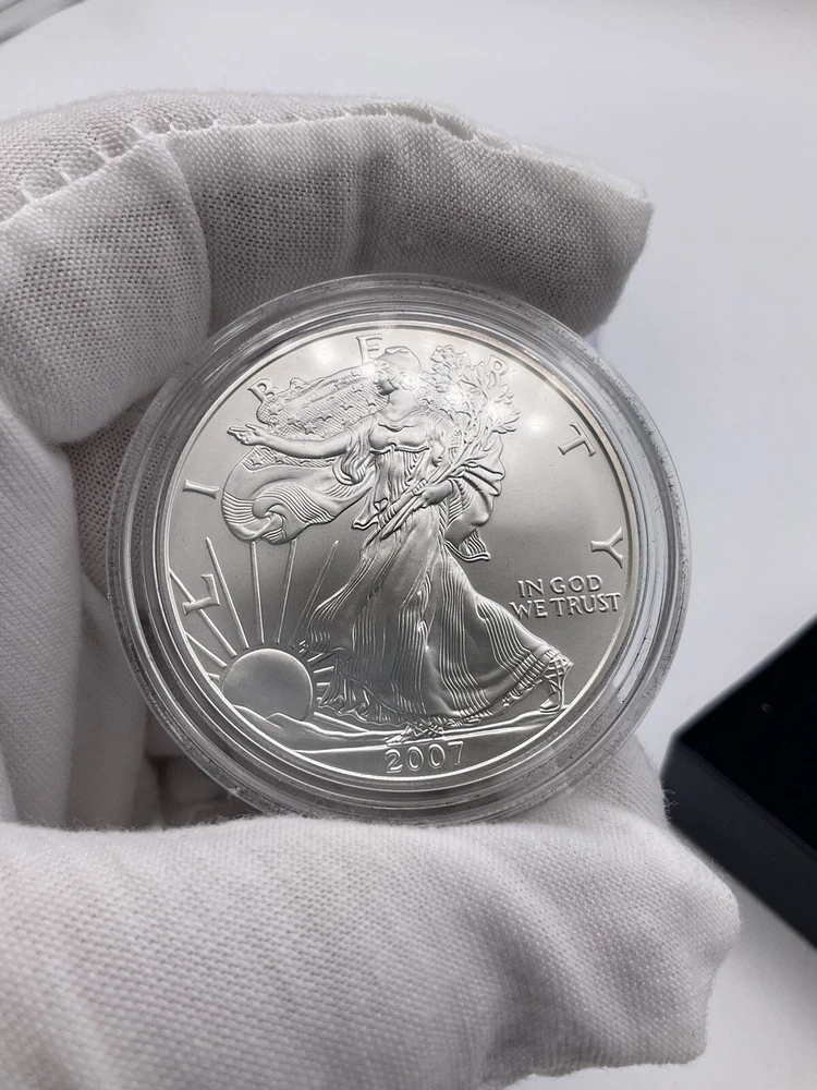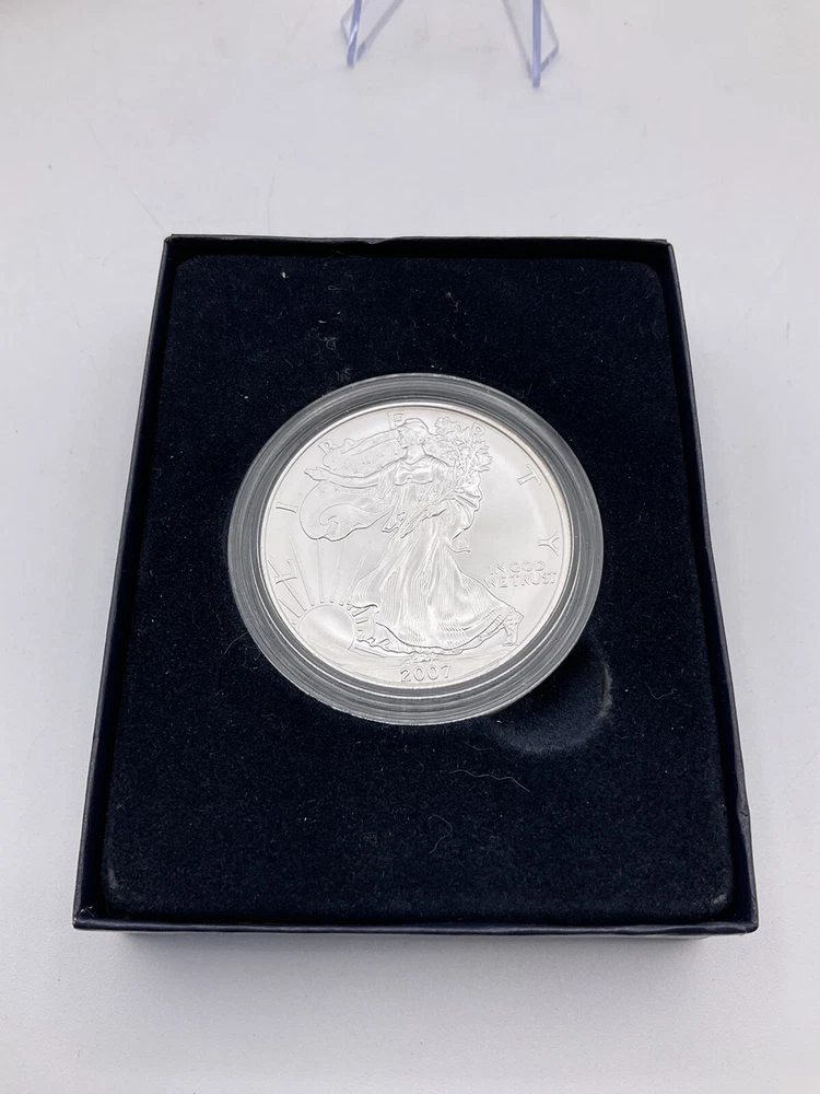 You are looking at a 2007 W US Mint Uncirculated 1 oz One Ounce Uncirculated American Silver Eagle. This item is new. Please see all pictures for details! About Us Customer service is our #1 priority! If for any reason you are dissatisfied with your purchase we offer a 30 day money back guarantee unless otherwise noted in the listing (AS-IS/For Parts - No returns.) We only accept items back in the condition that they were sent to you. Items that are listed AS-IS are not eligible for this money back guarantee. If you are unhappy with your purchase PLEASE contact us BEFORE leaving feedback or contacting eBay so we can work with you to resolve any problems. Shipping When we charge shipping to our customers we only pass on to our buyers exact shipping costs - no added fees. We offer combined shipping for multiple items purchased, so if you purchase more than 1 item from us, please wait for us to combine shipping costs. We require signature confirmation on all items that sell for $750.00 & more per eBay's selling policy. We also insurance all items that sell for $250.00 & more. PLEASE NOTE: WE DO NOT WORK/SHIP ON HOLIDAYS OR WEEKENDS! We use the eBay Global Shipping program for international shipping. DLLR License #991 Please note, we are not an authorized distributor or manufacture's representative of this item. *This product may contain a chemical known to the state of California to cause cancer and birth defects or other reproductive harm* Track Page Views With Auctiva's Counter
