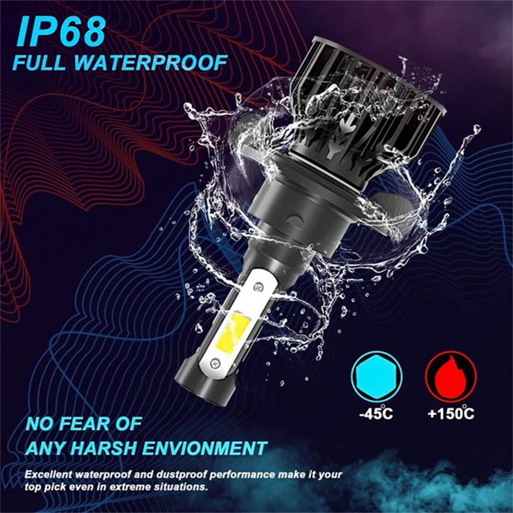 Feature: ☑ 300% Brighter : Equipped with high luminous efficacy chips. 8000LM/pair, 300% Brighter than standard halogen. LED headlight bulbs ensure the clarity of vision allows drivers easy to react to sudden movement. Effectively illuminate wildlife, falling rocks and obstacles. Huge improvement for road safety. ☑ Ideal Beam Pattern : LED bulb features 0.12inch slim led chips distance design that almost can emit 360 degrees illumination angle. Super focused beam pattern as stock halogen lamp, no dark spots or glare to oncoming drivers, avoiding scattered light problem to ensure safety. ☑ 50,000 Hours Lifespan : Aviation aluminum heat sink for an optimal heat dissipation. Efficient cooling system speed up heat dissipation to ensure LED headlight bulbs superior performance, lifespan up to 50,000 hours. ☑ 10 Mins Quick Install : Built-in driver and non-polarity plug, 1:1 same filament position as stock halogen. LED headlight mini size design for higher compatibility in factory housing. No modification required, easy installation in 10 mins. Plug & play! ☑ Superb Performance : CANbus ready and fit with 99% vehicles without issue. Integrated with EMC chip, no radio interference. Specification: ☑ Bulb Type : 9008/H13 ☑ Color temperature : 6000K white ☑ Beam Angle : 360 Degree ☑ Working Temperature : -40-150 degree ☑ Voltage : DC 9V~32V, built in IC driver, much more stable than normal LED bulbs, longer lifespan ☑ Heat Control : Aluminum Body ☑ Lifetime : >50000 hrs ☑ Waterproof : IP67 ☑ Lumens : 8000 lm per Bulb What's in the box: ☑ 9008/H13 High Low Bulbs * 2 How Do I Know These LED Bulbs are Right for My Vehicle? ☑ Check your vehicle user manual or original halogen bulb, the part number is marked above. ☑ Search "automotive bulb look-up" online, and enter your vehicle info to find out the correct size. ☑ Contact us, write down your vehicle year, make, and model, we will help you check.