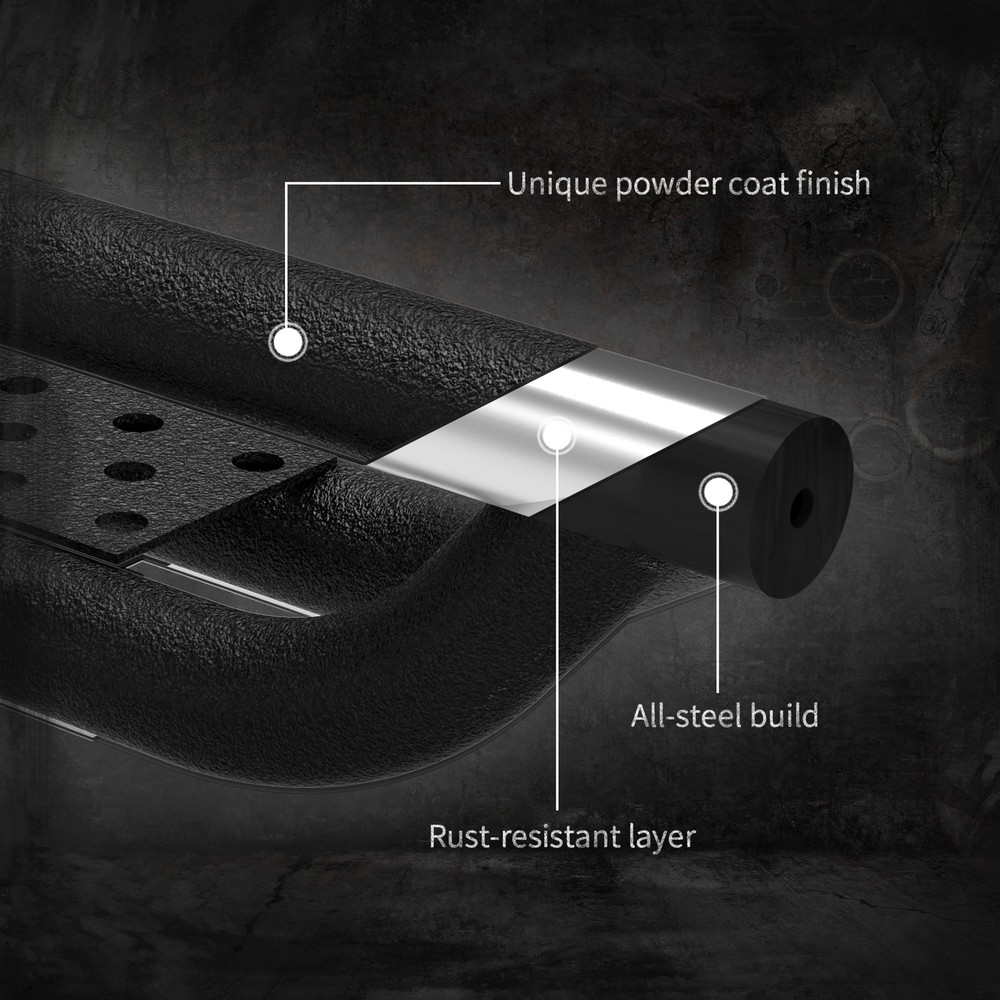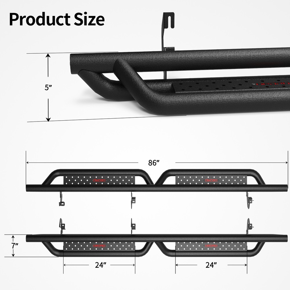 1. These running boards are a game-changer! They make getting in and out of my lifted Silverado so much easier, especially for my kids. The sturdy build holds up well off-road, and the textured coating resists scratches. Love the extra side protection—no more worrying about door dings or brush. Installation was straightforward, and they look sleek on my truck. Definitely worth it for the price!