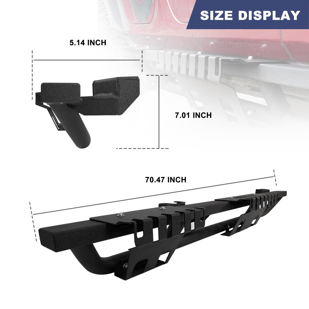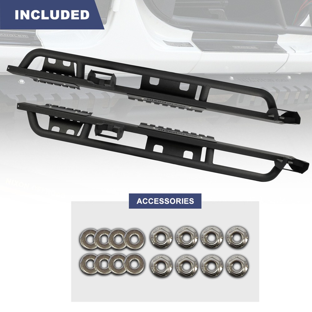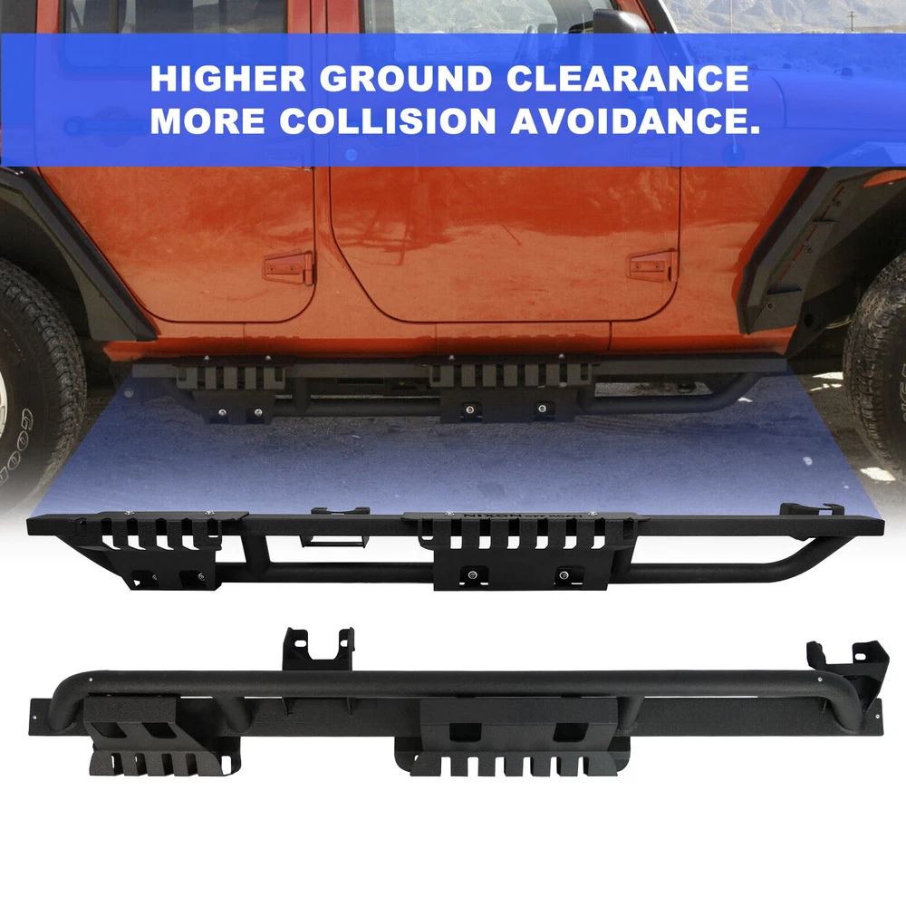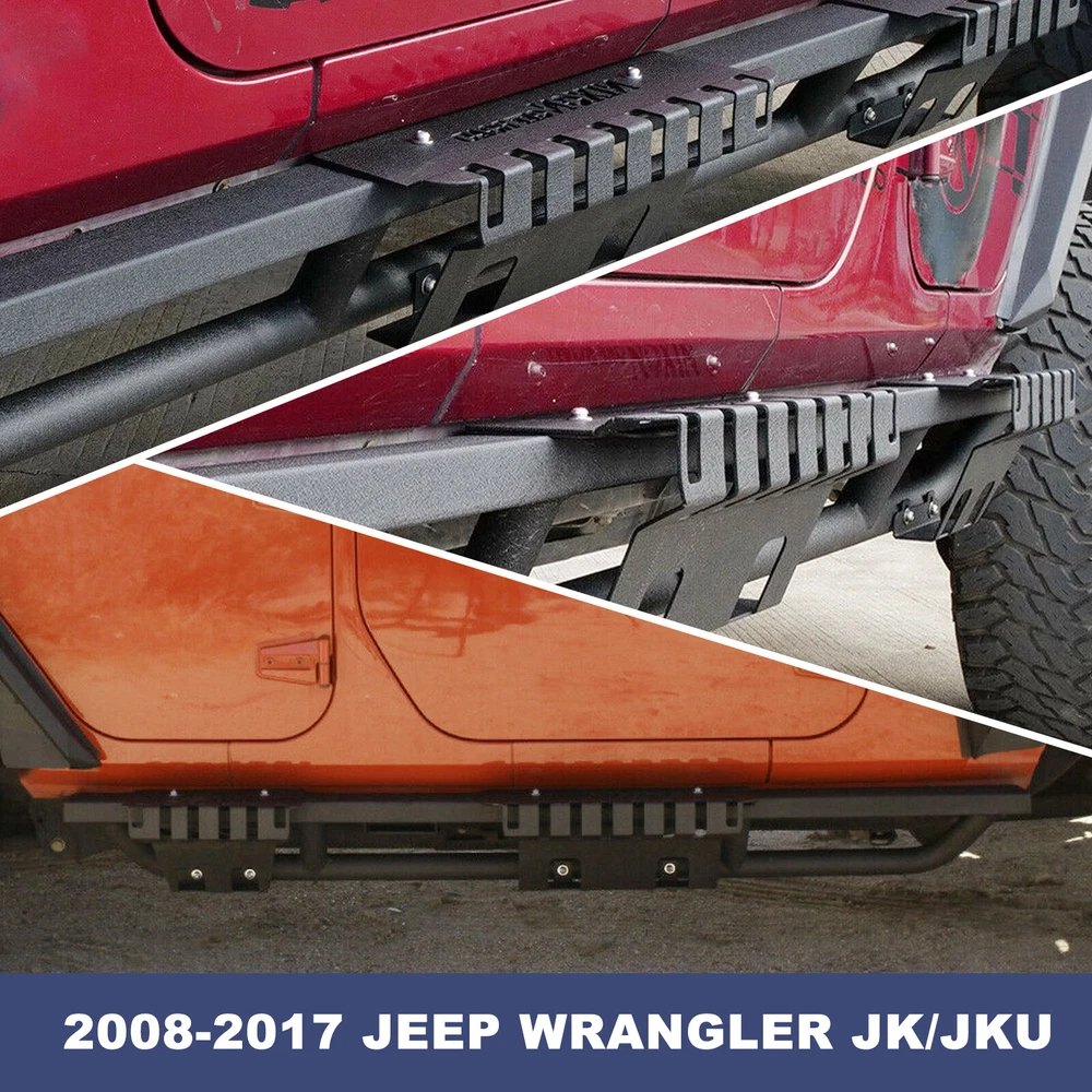 Side Steps Nerf Bar 2PC for 2007-2018 Jeep Wrangler JK 4DR Running Rock Slider Features Demountable and adaptable running boards - Apply to Daily Use & Off-road Use. Perfect for off-road use - These Nixon Offroad Rock Slider Side Steps provide excellent protection for the side and undercarriage of your Jeep while rock crawling. The durable non-slip step pads ensure an easy entrance and exit from your Wrangler JK. Easy installation - package includes installation manual for your reference, direct bolt-on installation. High quality built - applied cold rolled steel with a textured black powder coat for corrosion protection and durability. 100% Brand New in the box with manufacturer packaging, never been opened or installed before. Fitment Compatible for 2008-2017 Jeep Wrangler JK 4 Door Only Specification Material: Textured Black Powder Coated Steel Features: Mounting Hardware Included, Designed in USA Product Dimensions: 70.47 x 7.01 x 5.14 Inches Package Includes 2* pcs of Rock Sliders Side Steps 1* set of Mounting Accessories 1* Installation Manual Payment Delivery details Terms of sales About us Contact us Payment π We accept PayPal (Recommended), credit card, VISA, Google Pay & Discover etc. π Please submit your payment within 7 days after your purchase. π If not, eBay will automatically open an Unpaid Item Dispute on our behalf if the item(s) are not paid within 7 days. Delivery details π Please double check your delivery address and contact information. π All items will be shipped within 1 business days after payment received. π Tracking numbers will be easily accessible ASAP they are created and processed. Terms of sales π Free 60 days Return, we will cover the return post fee. π If a defective product was received, please do not hesitate to message us via eBay message. π We will response in 24 hours in business to resolve the problem π We stand behind our products. Items can be returned for exchange or full refund within 60 days from the date you receive. About us π Wolfstorm has a huge warehouse and office located in the United States. π All US domestic 48 states customers are able to benefit from the FREE SHIPPING services. π Our experienced, professional customer service representatives offers prompt and courteous service. π Best quality products, outstanding services and professional experience keep our customers. Contact us π Please feel free to contact us if you have any problems. π Emails will be replied within 24 hours in working days. π After hours emails will be replied on the next business day.