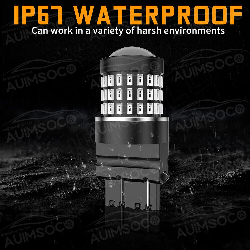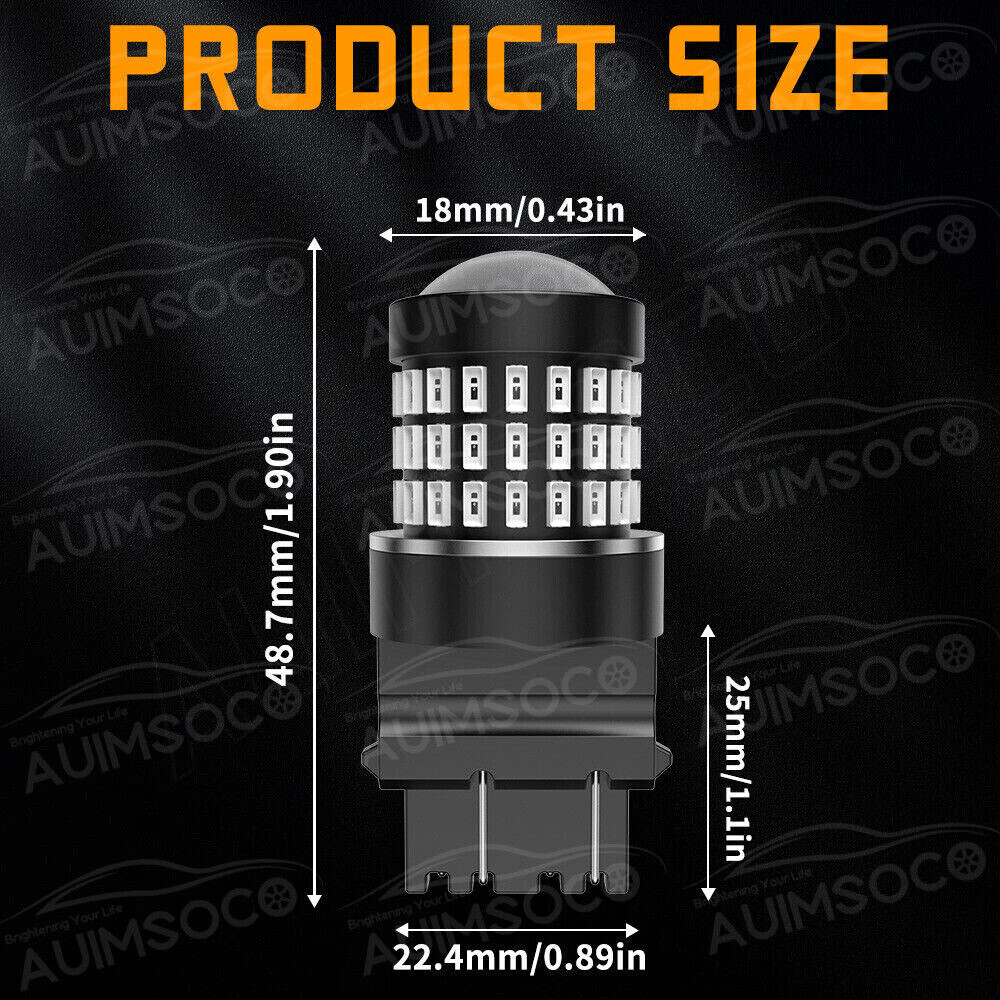 Home Payment Shipping Hot Item Contact us Details About this item [A Higher Level of Visibility] Using high power 3014 SMD LED chips, 54 chips per bulb to produce peak brightness output, and less heat compared to other bulbs that sometimes use 10 chips. Make a big difference for your vehicle! [Non-Polarity Design] Directly replace your factory halogen lamp perfectly with the same socket and electrical connector, for plug and play installation. You needn't worry whether you have a CK or Non-CK socket, these bulbs are universally [Excellent Heat Dissipation Construction] AUIMSOCO bulbs use built of lightweight and high-strength aluminum alloy as bulb body to keep themselves cool, even if they're used in constant-on applications like daytime running lights, they still illuminate non-fading brightness. [Built-in Constant Current IC Driver] A constant current driver is a device that takes any incoming voltage and smooths it out, regulates it, so a steady stream of voltage/current reaches the LED, ensures a bright, efficient and long-lasting illumination. Specificatio: Application:backup reverse lights, Daytime Running Light,brake tail light,Parking light etc. LED Chip:3014 SMD High Lumen:1200Lm/per bulb, 2400LM/per Set Color Temperature:RED Waterproof Level:Waterproof & Shockproof Working Voltage:DC 9V to 18V Beam Type:360°Beam Angle, no dark spots Lifetime:More than 30000 hours Brightness: No dark spots, 300% Brighter Feature: Low consumption, New look, No polarity design, plug&play, easyinstallation. Just plug & play Used for reverse lights Canbus error free Size: as photo showed. CANBUS: YES, ERROR FREE, Just plug & play Used for Vehicle backup reverse lights, Daytime Running Light,brake tail light,Parking light etc. Package including: 2x Red 3157 LED Bulbs Shipping Policy Payment Method Returns Policy Feedback Shipping Policy We will deliver the goods to you through USPS, which will take about 3-6 working days. You can track it online. Payment Method Items will be shipped to your eBay address. Please make sure it is correct. Payment must be received 4 days after auction ended. Returns Policy If product is defective or damage upon arrival, or wrong product shipped, please contact us immediately. Returns accepted within 30 days of delivery date and item must be in original new condition, not worn or altered in any way with attached tags & wrap. Otherwise deal is final. Return shipping must be paid by buyer. Feedback If you have ANY issues with shipping, product or service, please Contact Us first before leaving feedback/write a review or filing a return case. We will solve the problem! We always put our customers first and your satisfaction is guaranteed. Our AUIMSOCO Tech's are here to serve you. Email us and our expert team will swiftly diagnose the issue and offer the best solution within 12-24 business hours. All off-hours emails will be answered the next business day.