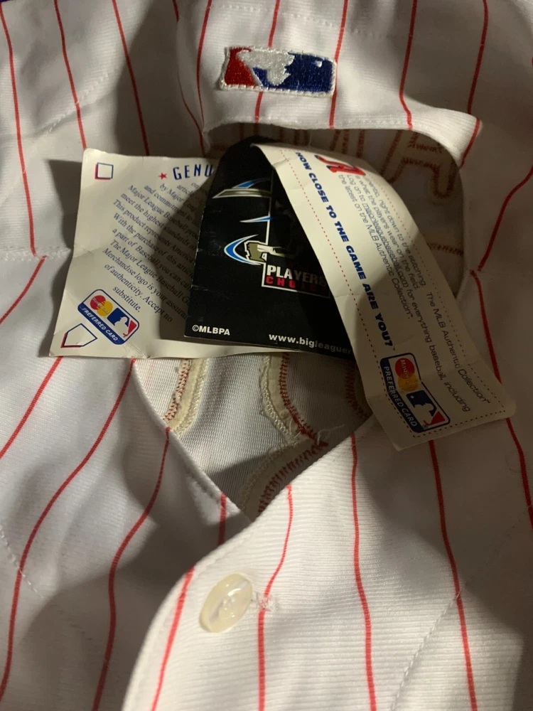 FANTASTIC COLE HAMELS 2008 PHILADELPHIA PHILLIES WORLD SERIES FALL CLASSIC MLB MAJESTIC PLAYERS CHOICE JERSEY SIZE 60 2XL WITH PATCH #35 EXCELLENT CONDITION UNUSED NEVER WORN WITH TAGS. VERY FAINT AGE TONING MENTIONED FOR ACCURACY ONLY AROUND OUTER EDGES FROM HANGING IN CLOSET 25 YEARS. !!!! $$$$$$$$$$$$$$$$$$$$$$ $$$$$$$$$$$ ***************************THOUSANDS OF VINTAGE CARDS, HUNDREDS OF WAX BOXES, SIGNED PHOTOS, MEMORABILIA, AND MORE TO BE LISTED EXCLUSIVELY HERE ON EBAY. CLICK GROBEE1957 TO FOLLOW ALL THE ACTION . WE ALWAYS COMBINE SHIPPING . WE RUN TRUE WEEKLY AUCTIONS WITH LOW MINIMUM BIDS.CHECK OUT OUR EBAY STORE FOR MORE GREAT VINTAGE MATERIAL ADDED EVERY WEEK. WE ARE ACTIVELY SEEKING TO BUY COLLECTIONS OF ALL SPORTSCARDS IN ANY CONDITION, PROGRAMS, AUTOGRAPHS, TICKETS STUBS, PENNANTS, PHOTOGRAPHS AND MORE FOR BASEBALL- FOOTBALL -BASKETBALL AND HOCKEY......MAJOR LEAGUES AND MINOR LEAGUES. WE PAY GENEROUS COMMISSIONS FOR ANY REFERRALS THAT LEAD TO A SALE