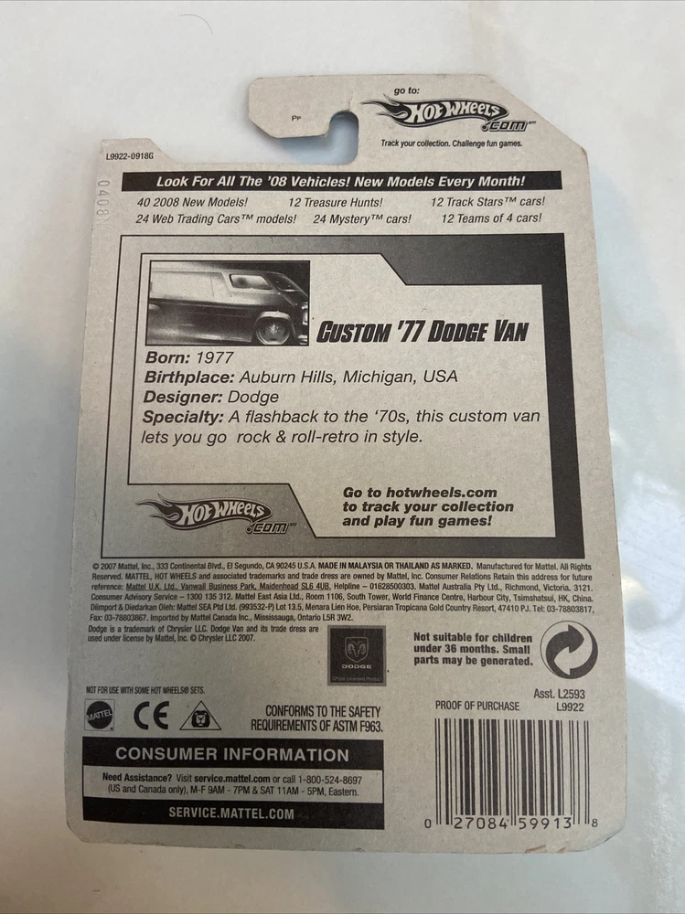2008 Hot Wheels New Models Custom '77 Dodge Van Gray w/Flames 7.