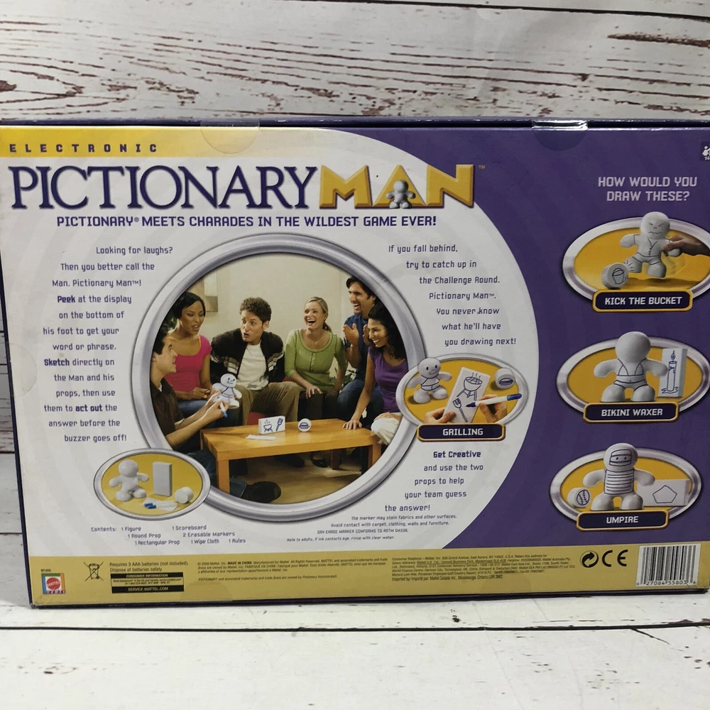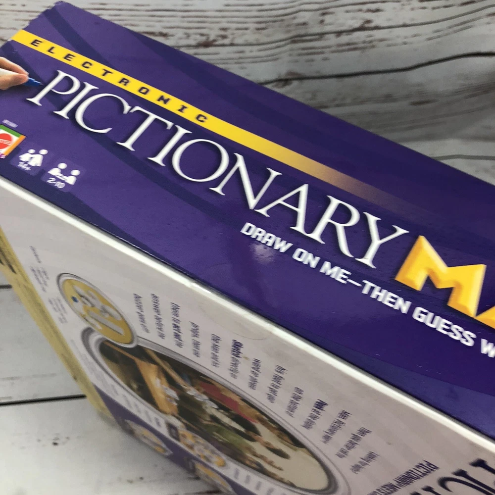 Game Type:Family GameBrand:MattelRecommended Age Range:14+UPC:0027084558036Year:2008Award:Games 100Type:Complete GameFeatures:Automatic/Electronic Table, Giant Game VersionGTIN:0027084558036Theme:StrategyGame Title:PictionaryGender:Boys & GirlsMPN:M1009Age Level:17 Years & Up, 8-11 Years, 3-4 Years, 4-7, 12-16 YearsMin. Number of Players:2 playersgtin13:0027084558036