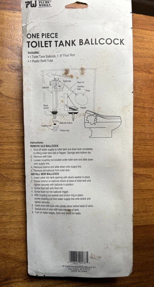 Upgrade your toilet with the 2008 Plumb Works One Piece Toilet Repair Kit. This kit includes a white plastic flush valve that fits standard toilets. It is suitable for use in bathrooms and is specifically made for toilets. This kit will ensure that your toilet is working properly and is an essential addition to any bathroom. Add it to your cart now! Check to make sure compatibility first before purchasing brand new in package thank you