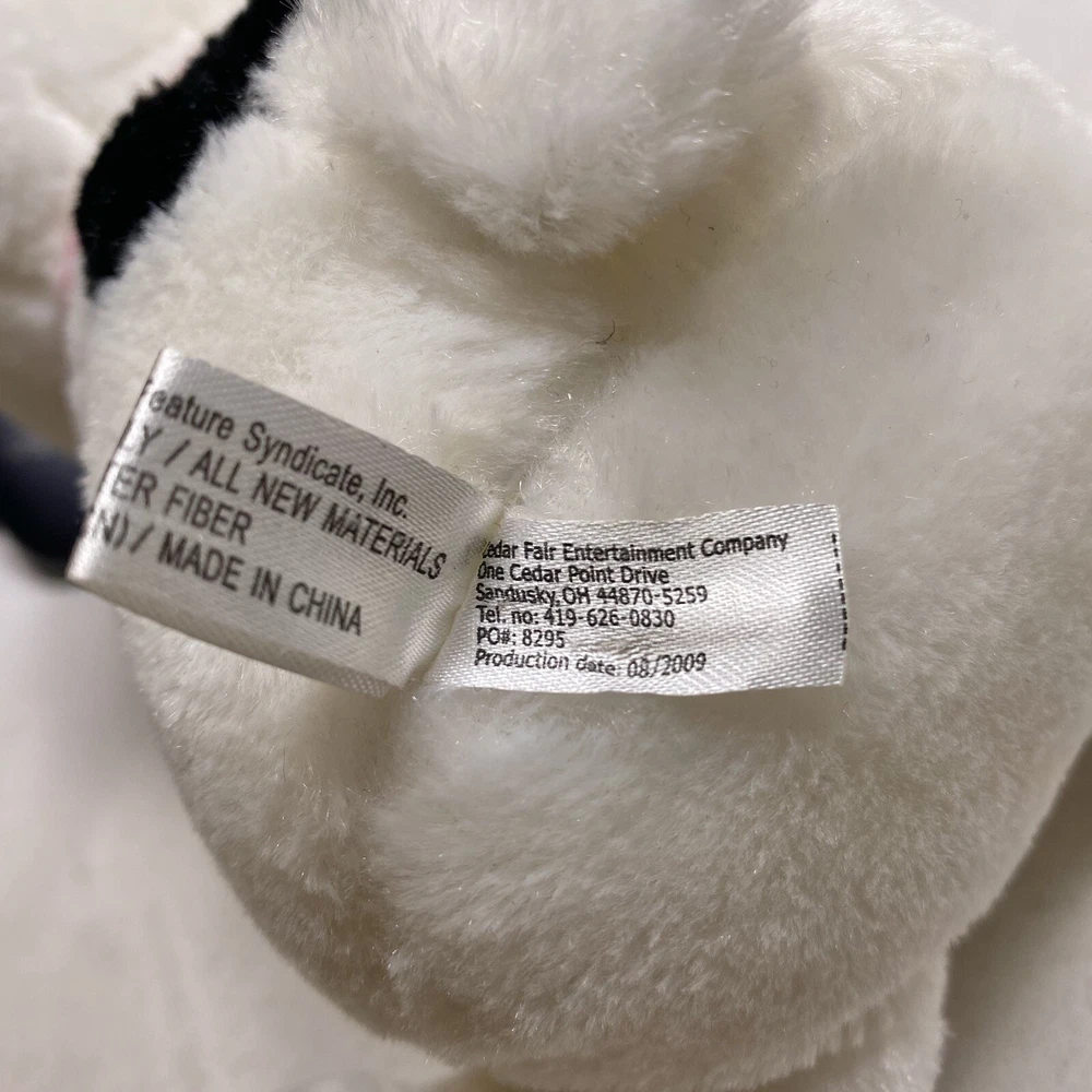 Character:SnoopyAnimal Species:DogColor:WhiteType:Stuffed AnimalBrand:Cedar FairYear Manufactured:2009Material:PlushTV Show:PeanutsFranchise:PeanutsSeller Notes:“In good condition. Photos show the actual item you will receive.”