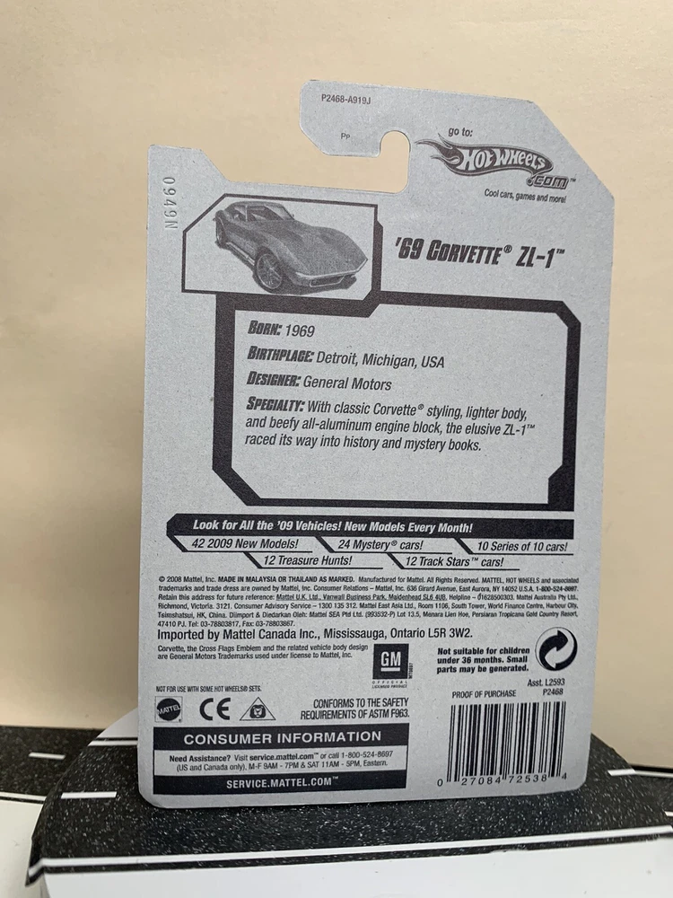 Modified Item:Nogtin13:027084725384Vehicle Type:CarCustom Bundle:NoAge Level:3-4 Years, 4-7, 8-11 Years, 12-16 Years, 17 Years & UpTheme:Dream GarageYear of Manufacture:2009Brand:Hot WheelsCustomized:NoAutographed:NoRecommended Age Range:3+Vehicle Year:1969UPC:027084725384Model:'69 CORVETTE ZL-1Country/Region of Manufacture:MalaysiaScale:1:64MPN:P2468-A919JVehicle Make:ChevroletColor:BlueGender:Boys & GirlsSeries:Hot Wheels Dream Garage '09Character Family:Die Cast CarsMaterial:Die-cast Metal / Plastic