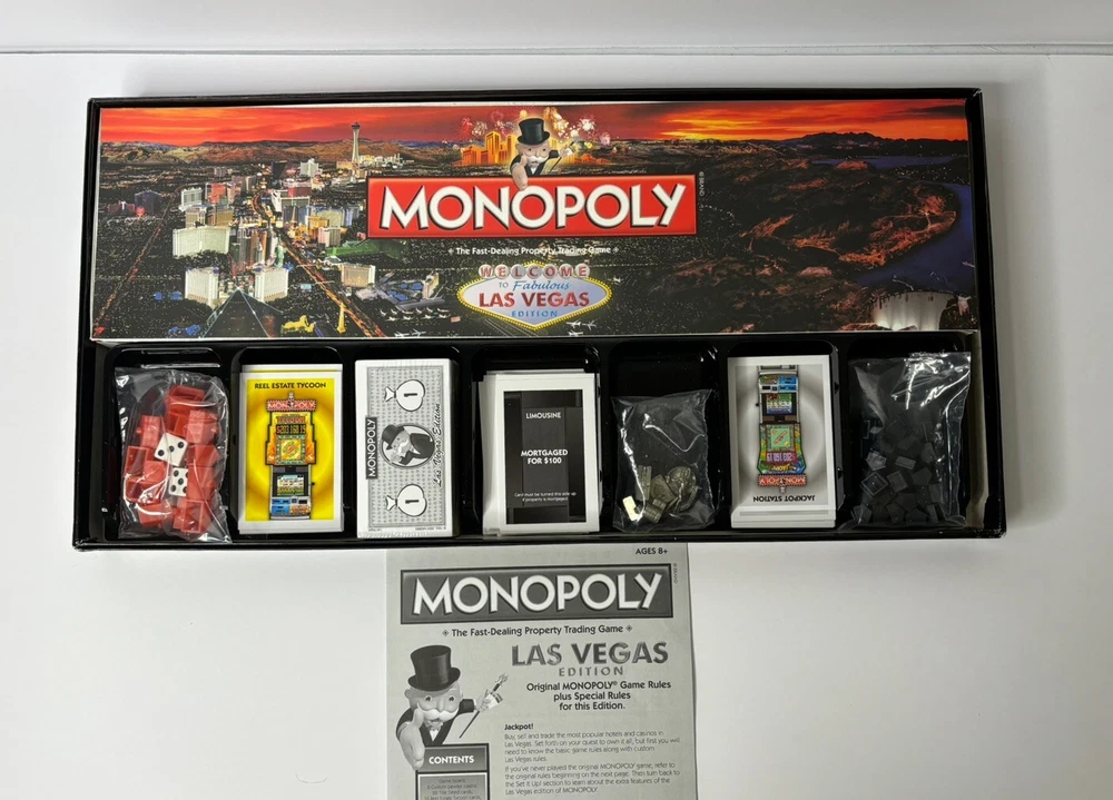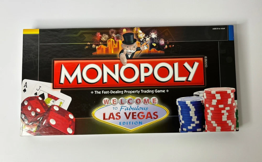 Experience the thrill of the popular board game "Monopoly" in the 2009 "LAS VEGAS" edition. This game is perfect for 2 or more players who love to compete and have fun while playing. The game board features the iconic Las Vegas skyline and includes all the original Monopoly components such as cards, tokens, and money. This Hasbro board game is a must-have for any Monopoly fan or collector. The game is easy to learn and offers hours of entertainment for players of all ages. Get ready to buy, sell, and trade your way to success in this exciting game of chance and strategy.