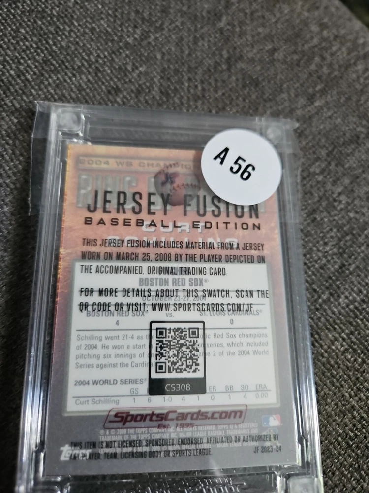 This 2009 Topps RING OF HONOR #24 Curt Schilling BOSTON RED SOX Jersey Fusion trading card is a must-have for any baseball fan. Featuring the former Boston Red Sox pitcher and World Series champion, this card is sure to be a prized addition to any collection. The card is from the 2009 Topps set and includes the player's name, team, and season. The card also includes special features like the "Insert" and "Jersey" aspects, making it a unique and valuable item. Whether you're a collector or just a fan of Curt Schilling and the Boston Red Sox, this trading card is the perfect addition to your memorabilia collection.