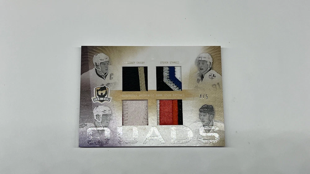 2009-10 Upper Deck The Cup Quad Patches - Sidney Crosby (2 color), Steven Stamkos (4 color), Jonathan Toews (2 color), Jeff Carter (3 color). Beautiful card in great condition. Shipped with USPS first class and will be well protected. Please let me know if you have any questions