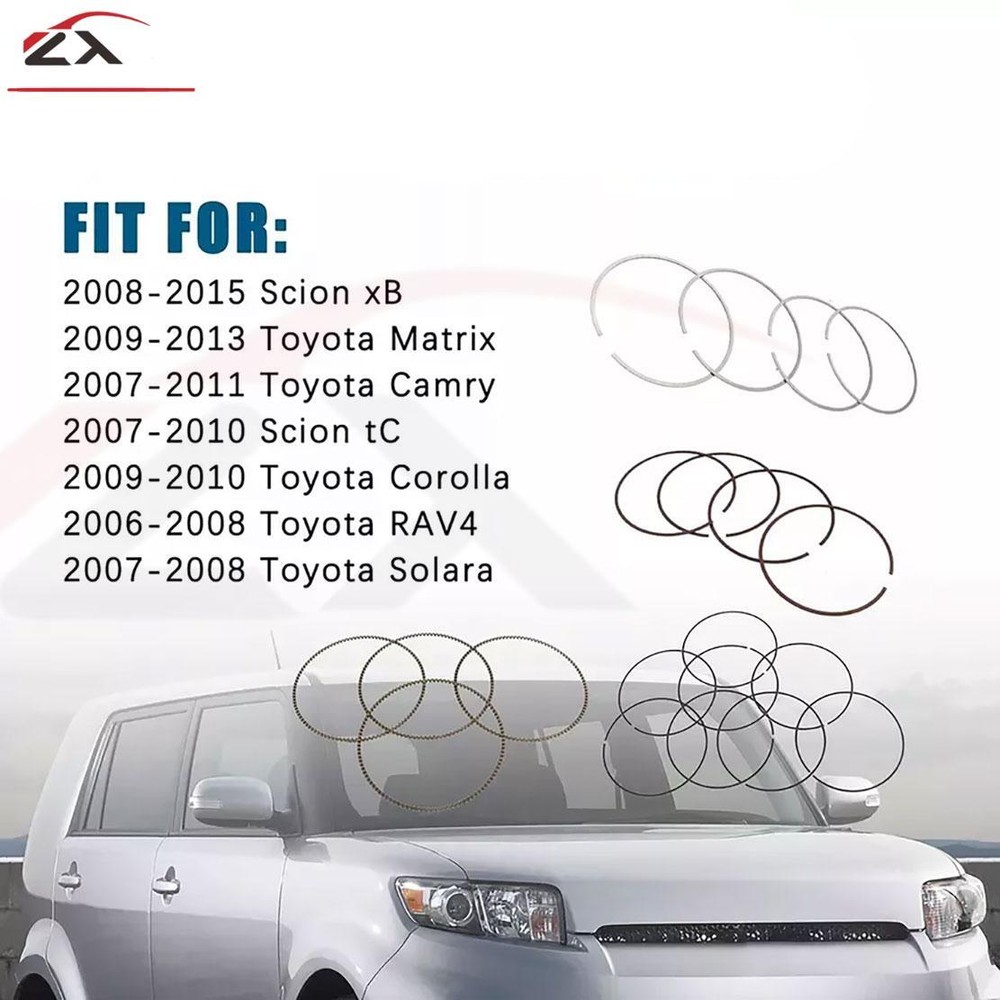 DESCRIPTION: 3 Year Warranty 100% Brand New Direct replacement for proper fit and function every time According to original factory specifications, perfect match to original car. Made of high quality material. Easy to install. Parts are from certified professional factory. We highly value the buyer shopping experience and aimed to provide quality parts. Part Number: 2C5267 , 13011-0H031 , 13011-28161, PR932 FITMENT: Fit for: 2008-2015 Scion xB 2009-2013 Toyota Matrix 2007-2011 Toyota Camry 2007-2010 Scion tC 2009-2010 Toyota Corolla 2006-2008 Toyota RAV4 2007-2008 Toyota Solara Note: Please check as much as possible to make sure the item is the one that you need. Communication is the best way to solve the problem. If you have any problems after purchasing, please contact us in time, before opening return or case. Package Includes: 1 x Piston Rings Kit as the first picture shows On Mar 13, 2025 at 10:56:45 PDT, seller added the following information: