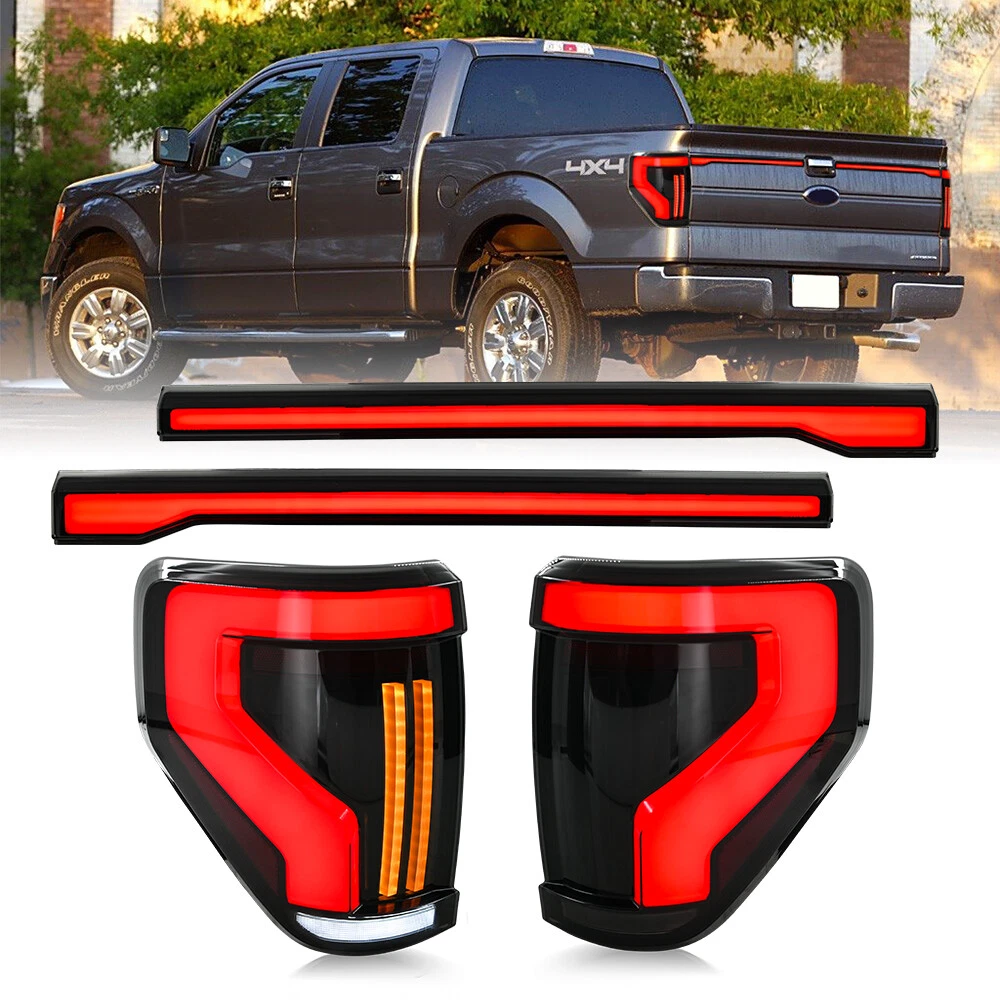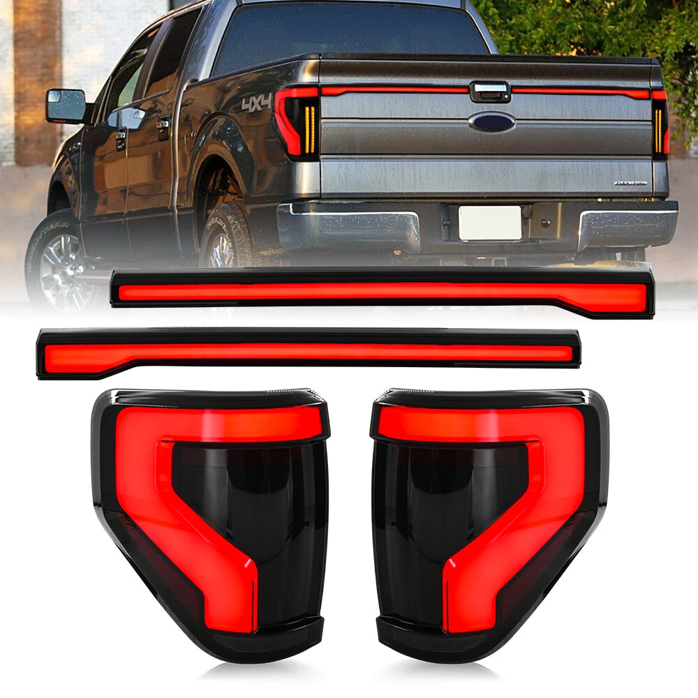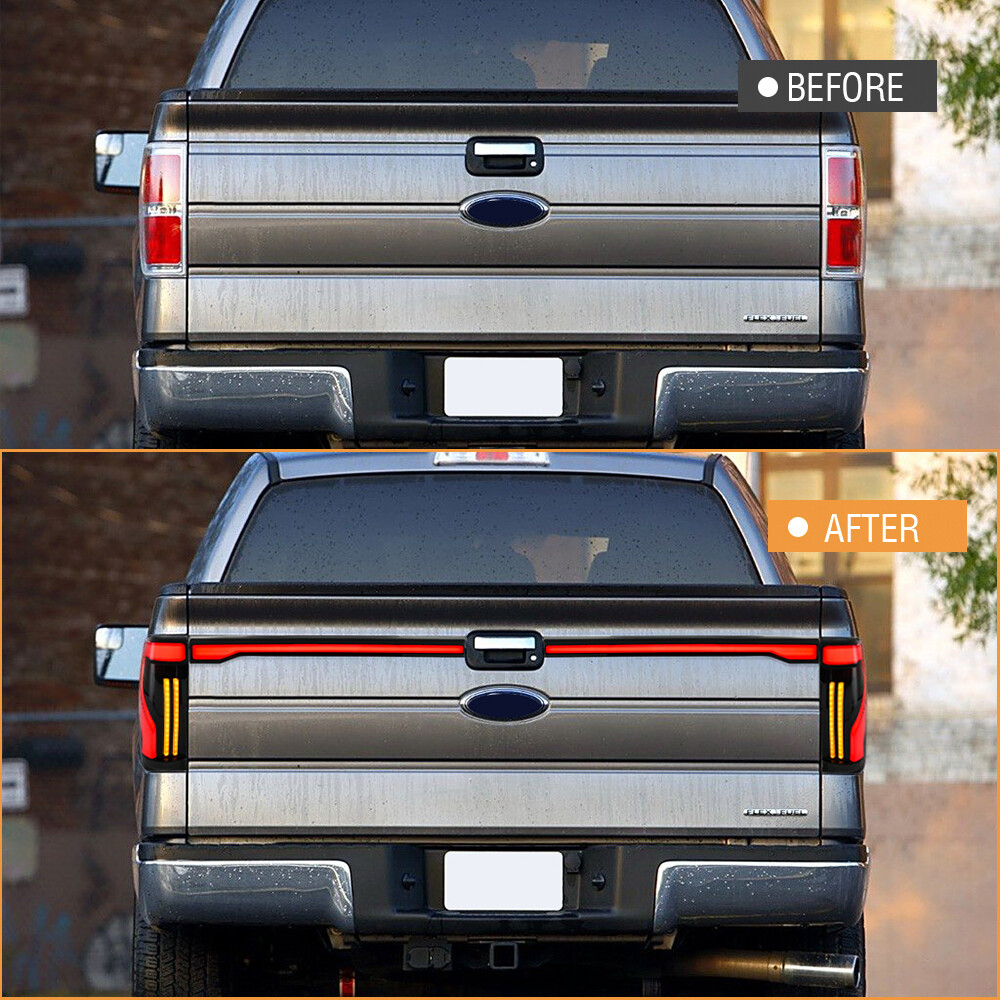 LED Tail Lights Center Trunk Light For 2009-2014 Ford F150 Rear Lamps Assembly Features: 1. One pair: Left + Right + Center Trunk tail lights 2. Tail Light Lens: Smoked Lens, Chrome Housing 3. Bulbs: All bulbs are built-in LED, no extra bulbs needed 4. Function: Rear Running Light (Red)+Turn Signal(Amber )+Reverse(White)+Brake (Red) lights 5. Easy installation: plug and play,same as original one to install 6.Assembly: all parts are included in the package,no need to buy extra bulbs or harness Fitment Fits For 2009-2014 Ford F150 ( Professional Installation is Highly Recommended ) Package include 1 Pair of Taillights (driver's side + passenger's side) Note 1. Please confirm whether this car-lamps can fit your car before buying, if you are not sure, please contact us and send us pictures of your original car light or plug. 2. Using your factory supplied connector/harness will avoid cutting or modifying any wires. Specification ·100% Brand New ·Professional Installation is Highly Recommended ·Welcome to send us message for more information Warranty: One-Year warranty after receiving After Sales Service Please contact us before returning the products, we will do our best to help you solve all the problem well with good service!!! Questions Any question will be replied within 24 hours except the weekend and holiday. We will serve for you all sincerity!