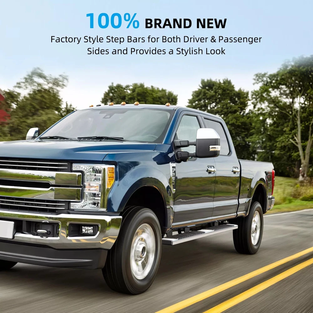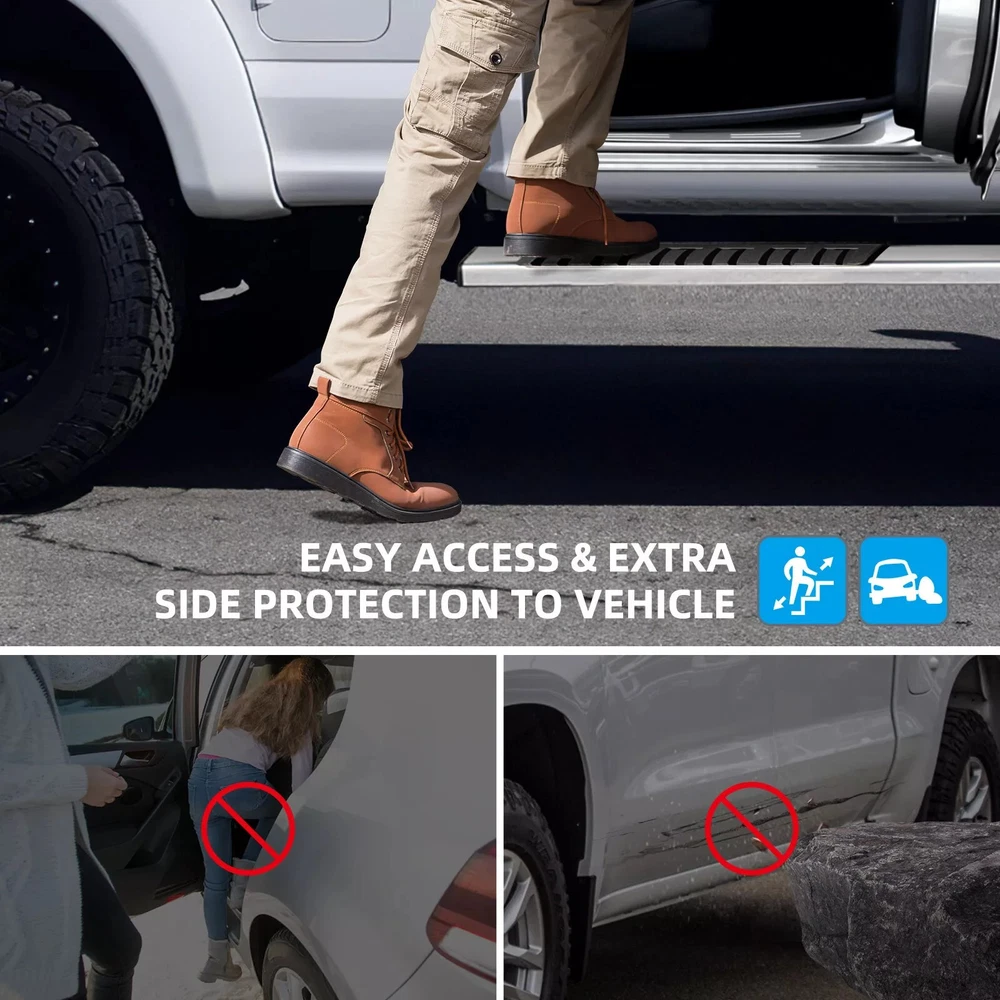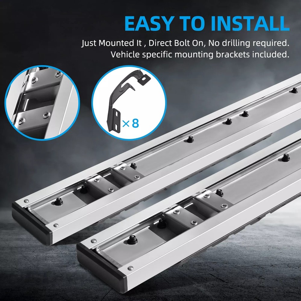 These running boards are a perfect match for my 2012 F150! The sturdy stainless steel and ABS construction feels solid underfoot, and the sleek silver finish adds a nice touch. Installation was straightforward—just bolted right on. Now getting in and out of the truck is so much easier, especially for my kids. Great value for the price!