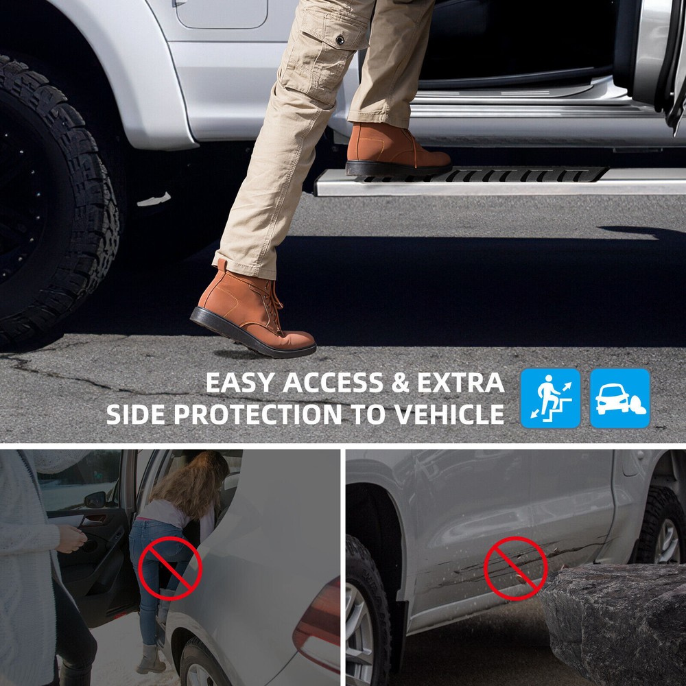 1. Just installed these on my F150 and they're fantastic! The textured surface gives great grip even when wet, and the black finish looks sleek. Installation was straightforward with all hardware included. Makes getting in and out so much easier while adding a rugged look to my truck.