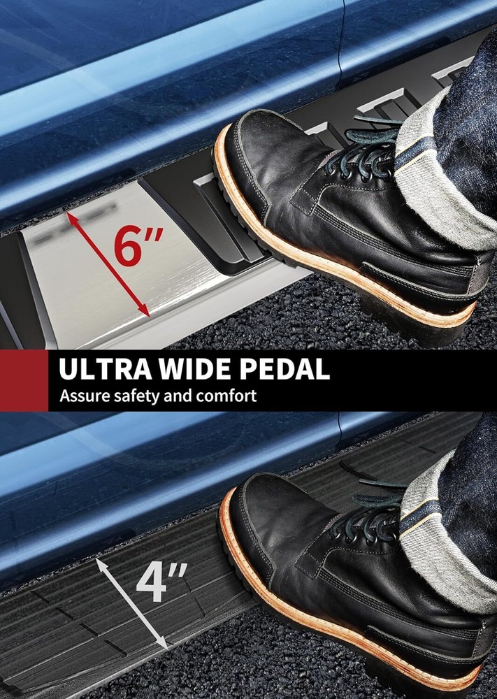 Finally got these running boards installed, and they look fantastic on my F-150! The sturdy construction gives me confidence, and the textured surface prevents slipping. Super easy to get in and out now, and the matte black finish matches my truck perfectly. Installation was straightforward with the included hardware. Definitely a must-have upgrade for anyone with this model—just double-check your cab size before ordering!