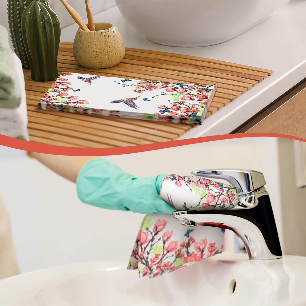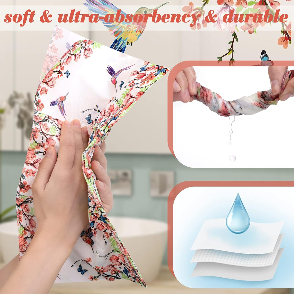 These disposable hand towels are a game-changer! The floral and bird design adds a cute touch, and the perfect size makes them super handy for quick cleanups. With 200 in a pack, they’re great for parties or everyday use—no more dealing with soggy or dirty cloth towels. Soft yet sturdy, they handle spills and messes effortlessly. A must-have for keeping things fresh and tidy!