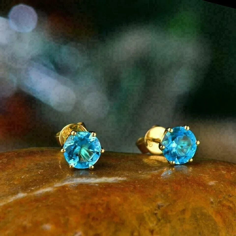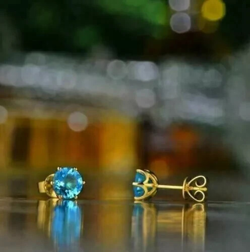 Main Stone: Blue Topaz Total Carat Weight: 2.00 Carat(Approx) Country/Region of Manufacture: United States Seller Warranty: Yes Main Stone Treatment: Not Enhanced Secondary Stone: Diamond Customized: No Personalize: No Gemstone Clarity Grade: Eye Clean Occasion: Anniversary, Birthday, Christmas, Confirmation/Communion, Graduation, Valentine's Day, Wedding Style: Stud Theme: Beauty Color: Yellow Type: Earrings Main Stone Color: Blue Cut Grade: Excellent Closure: Screw Back Main Stone Shape: Round Vintage: No Setting Style: Solitaire Metal Purity: 925 Metal: Sterling Silver Signed: No Antique: No Main Stone Creation: Lab-Created Brand: carving_jewels Handmade: Yes Material: Gemstone Base Metal: Sterling Silver Diamond Clarity Grade: Very, Very Slightly Included (VVS1) Wholesale: Yes