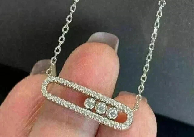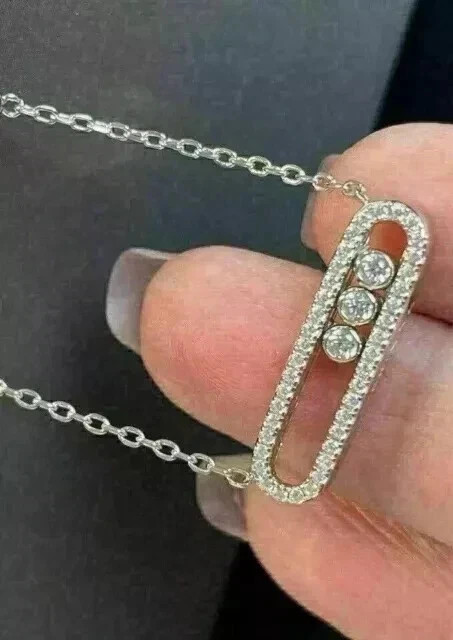 14K White Gold Pendant Necklace Round;pear Labcreated Diamond 3.3ct F/VS