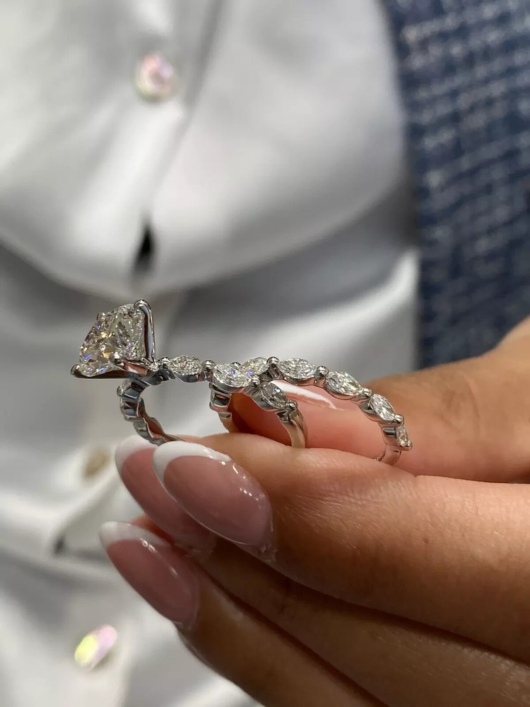 Main Stone Color: White Setting Style: Prong Number of Diamonds: As Per Image Character Family: Bridal Jewelry Main Stone: Moissanite Pattern: Floral Personalization Instructions: We Can Customizes As Per The Requirements Style: Ring Base Metal: Sterling Silver Shape: Round Colored Diamond Intensity: Fancy Light Color: White Materials sourced from: United States Personalize: Yes Occasion: Anniversary, Birthday, Christening, Christmas, Confirmation/Commu Cut Grade: Excellent Metal Purity: 14k Features: Engraved Number of Gemstones: As Per Image Country of Origin: United States Theme: Love Department: Women Size: All Ring Sizes Are Available. Please kindly Share Your Size Handmade: Yes Material: Moissanite, Sterling Silver Seller Notes: “UNWORN ITEM” Total Carat Weight: 2.50CT Main Stone Shape: Round Type: Ring Brand: classic_jewels01 Character: Bridal Set Main Stone Creation: Natural Certification: GRA Diamond Clarity Grade: Flawless (FL)