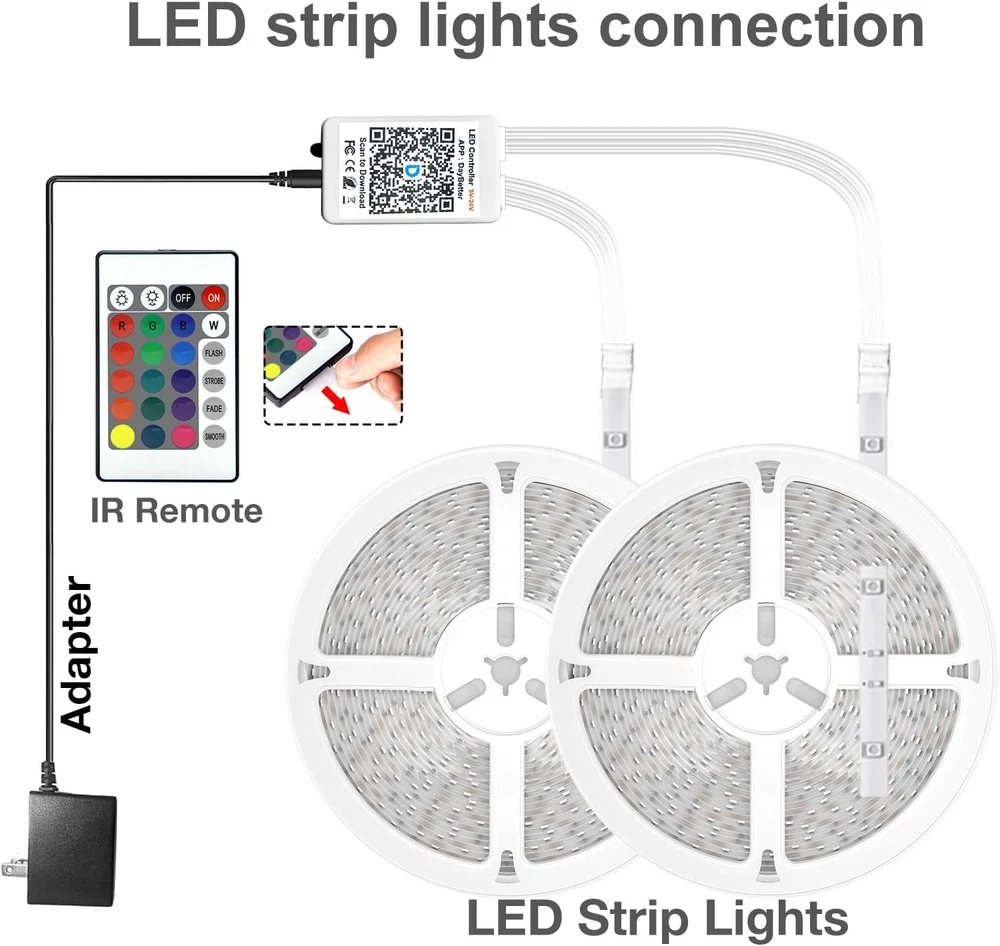 DAYBETTER LED Strip Lights 200 ft (2 Rolls of 100 ft), Smart App 200FT Product Details Brand: DAYBETTER Indoor/Outdoor Usage: Indoor Special Feature: Smart App Control Light Source Type: LED Power Source: Corded Electric Light Color: Multicolor Theme: Music Occasion: Christmas Style: Modern Material: Vinyl, Metal Controller Type: App Control Number of Light Sources: 300 Included Components: light strips, infrared remote and receiver, 24-volt power supply, instruction manual Number of Items: 2 Control Method: Remote Water Resistance Level: Not Water Resistant Seasons: All Seasons Wireless Communication Technology: Bluetooth Manufacturer: DAYBETTER Item Weight: 13.7 ounces Package Dimensions: 6.61 x 6.38 x 1.65 inches Item model number: DCF0223124G-DAUS0 Special Features: Smart App Control Batteries Included?: No Batteries Required?: No Package Dimensions : 6.61 x 6.38 x 1.65 inches; 13.76 ounces Item model number : DCF0223124G-DAUS0 Manufacturer : DAYBETTER Brand: DAYBETTER Indoor/Outdoor Usage: Indoor Special Feature: Smart App Control Light Source Type: LED Power Source: Corded Electric Light Color: Multicolor Theme: Music Occasion: Christmas Style: Modern Material: Vinyl, Metal Smart app and ir remote control: The 200 feet led strip lights support both app and 24 keys ir remote for control, different modes can be chosen, like flashing, quick, jump, fade, etc. You can freely choose to control 16 million colors Music sync: Led lights strip color changing sync to music by smart phone with App, make your party up to the high peak, light up your life and makes life more colorful and wonderful Smart timing settings: With timer function, the led strip has color memory and setting the time function, so it can automatically turn on and off Multiple scene options: The led strip lights 200 feet, 2 rolls of 100 feet, is long enough for bedroom, ceiling, kitchen, living room, bar and party decoration Easy installation: With strong adhesive, just use adhesive to attach the strip light to a clean, dry surface, then follow instructions on manual and you can finish in minutes