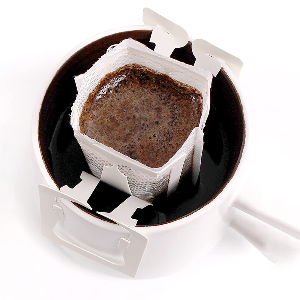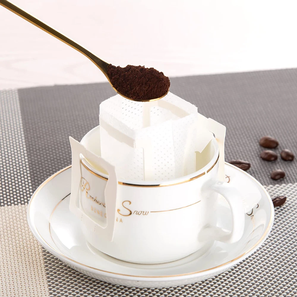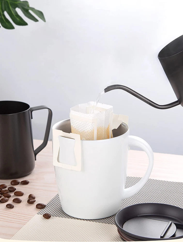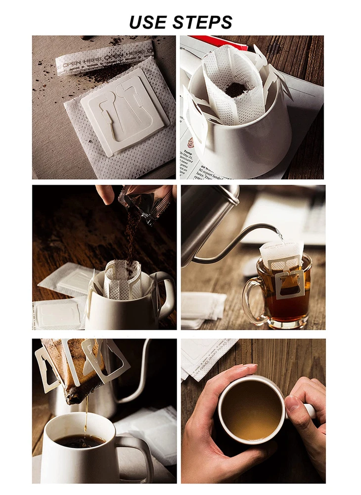 Package Includes: 4 bags of disposable coffee filter paper bags, each bag have 50pcs, 200pcs in total. Each coffee filter paper bag size approx. 3"L X 3.5"H, suitable for most sizes of cups Food Grade Material: The coffee filter paper is made of high food quality non‑woven fabric, safe and healthy. Bonded without use of any glues or chemicals Hanging Ear Hook Design: Drip coffee filter bags are designed for those who demand the best taste of coffee. Single serving size with convenient hanging ear design Quick & Simple: The unique hanging ear hook design of the coffee filter bags allows for quick and easy pour over brewing method for a cup of great tasting coffee in less than 5 minutes. Simply toss and throw away the used paper filter after every use Best Coffee Filter Paper Bag: Our small coffee filters easy to use, suitable for various types of cups, lightweight and portable, perfect for using in any occasions like at home, camping, traveling, or in the office
